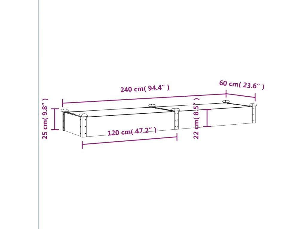 vidaXL Záhr. vyvýšený záhon s vložkou hnedý 240x60x25cm masívna jedľa