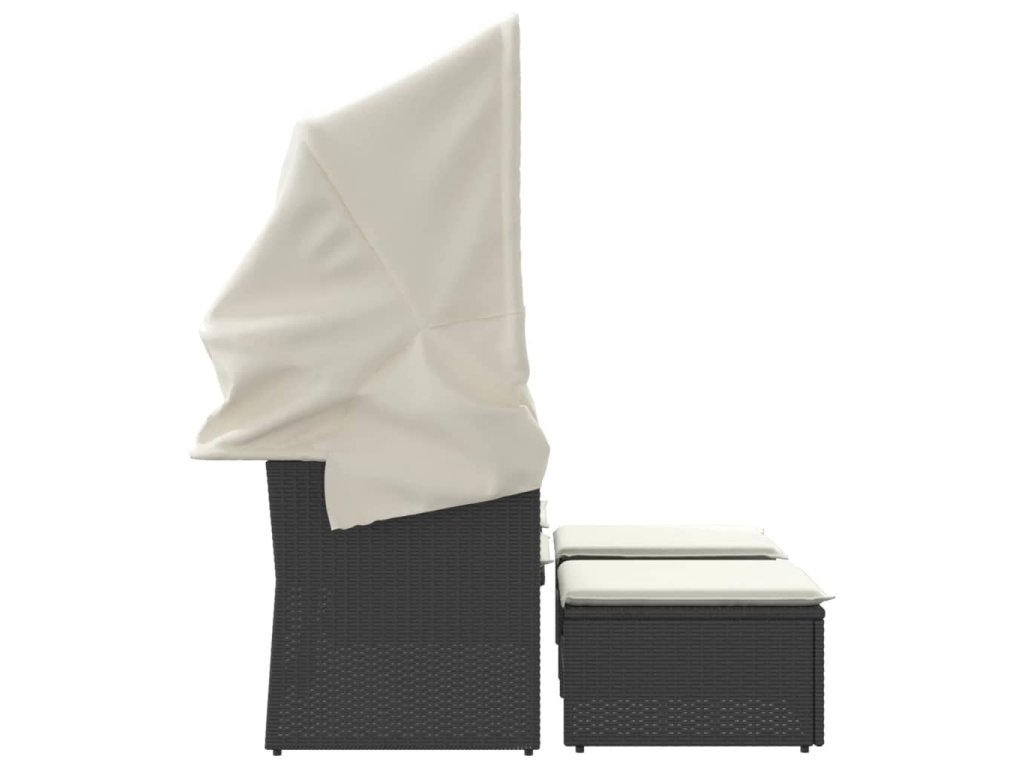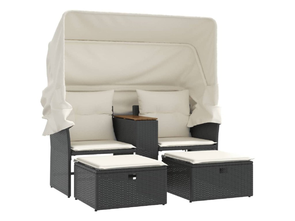 vidaXL Záhrad. pohovka 2-miestna strieška a taburetky čierna polyratan