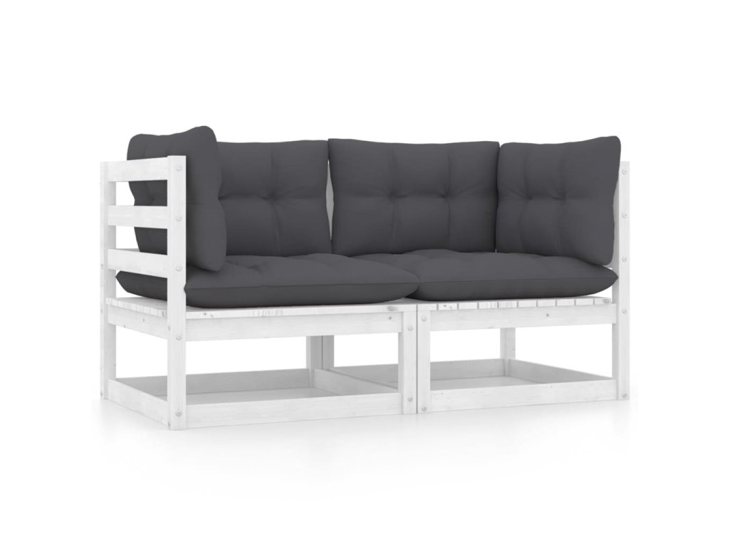 vidaXL Záhradná 2-miesta sedačka s podložkami biela borovicový masív
