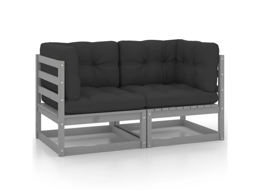 vidaXL Záhradná 2-miestna pohovka s podložkami sivá borovicový masív