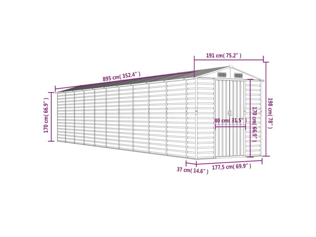 - Dostatok úložného priestoru: Táto kovová kôlňa poskytuje dostatok priestoru na uskladnenie palivového dreva, záhradného náradia, nábytku, vybavenia a ďalších vecí.