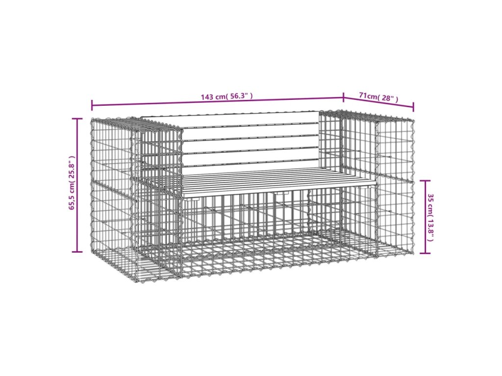 - Pevná a stabilná základňa: Táto vonkajšia lavička má základňu z koša z galvanizovanej ocele. Je navrhnutá tak, aby bola vyplnená kameňmi a štrkom pre dodatočnú krásu. Mriežku tvoria priečne a pozdĺžne drôty, ktoré sú zvarené na každom prieseku pre čo najväčšiu stabilitu.