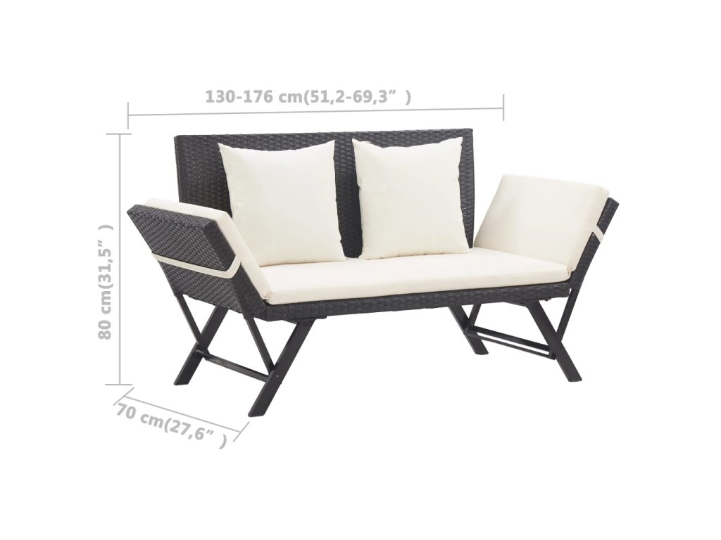 Táto záhradná lavica vyrobená PE ratanu z odolného voči poveternostným vplyvom je ľahko čistiteľná, odolná a vhodná na každodenné použitie. Vyznačuje sa pevným oceľovým rámom s práškovým povrchom, vďaka ktorému je táto lavica veľmi stabilná a odolná. Vďaka nastaviteľným stranám sa dá ľahko a rýchlo premeniť z lavice na dennú posteľ a späť. Silne polstrovaný vankúš poskytne maximálny komfort a dodatočnú oporu. Vďaka zipsu je poťah vankúša odnímateľný pre ľahké pranie.