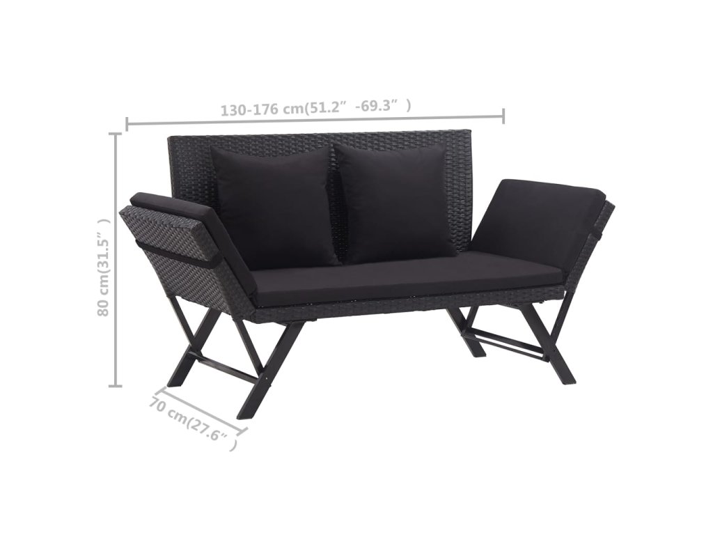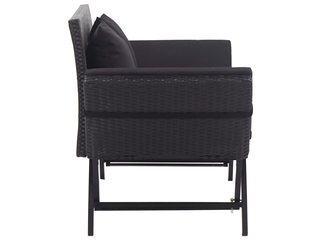 Táto záhradná lavica vyrobená PE ratanu z odolného voči poveternostným vplyvom je ľahko čistiteľná, odolná a vhodná na každodenné použitie. Vyznačuje sa pevným oceľovým rámom s práškovým povrchom, vďaka ktorému je táto lavica veľmi stabilná a odolná. Vďaka nastaviteľným stranám sa dá ľahko a rýchlo premeniť z lavice na dennú posteľ a späť. Silne polstrovaný vankúš poskytne maximálny komfort a dodatočnú oporu. Vďaka zipsu je poťah vankúša odnímateľný pre ľahké pranie.