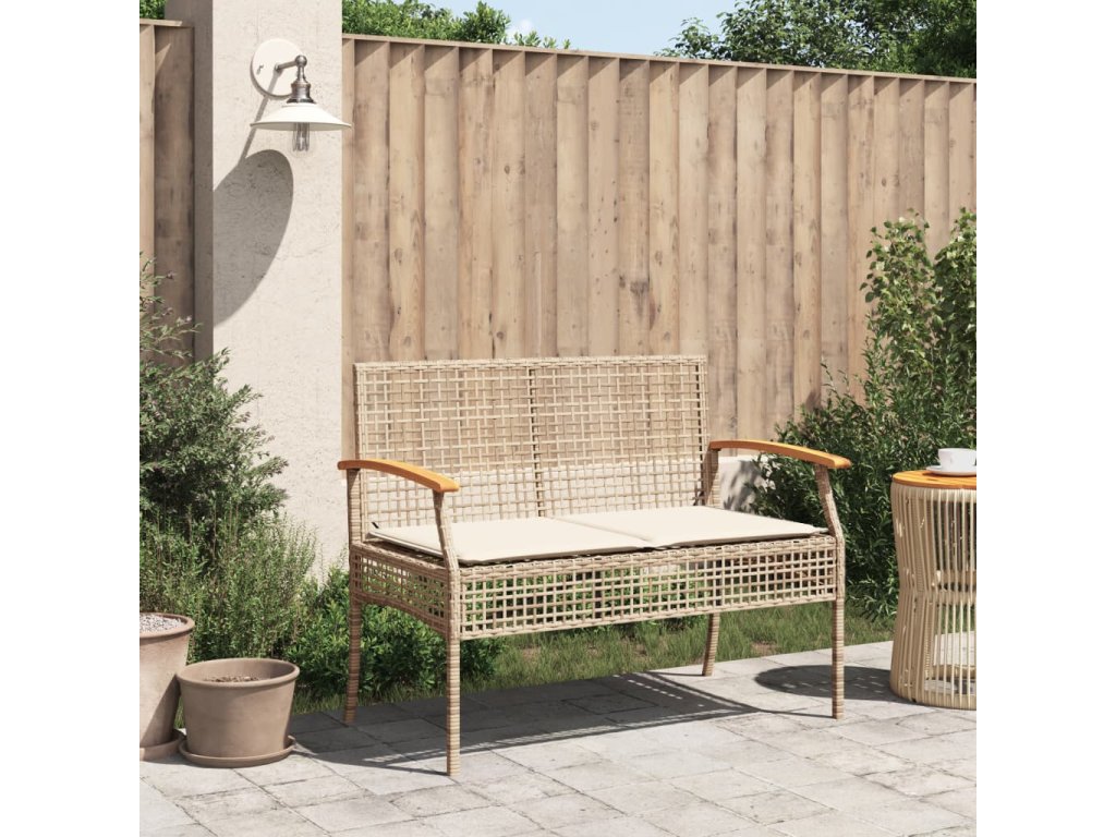 vidaXL Záhradná lavica s vankúšom béžová polyratan akáciové drevo