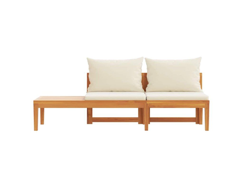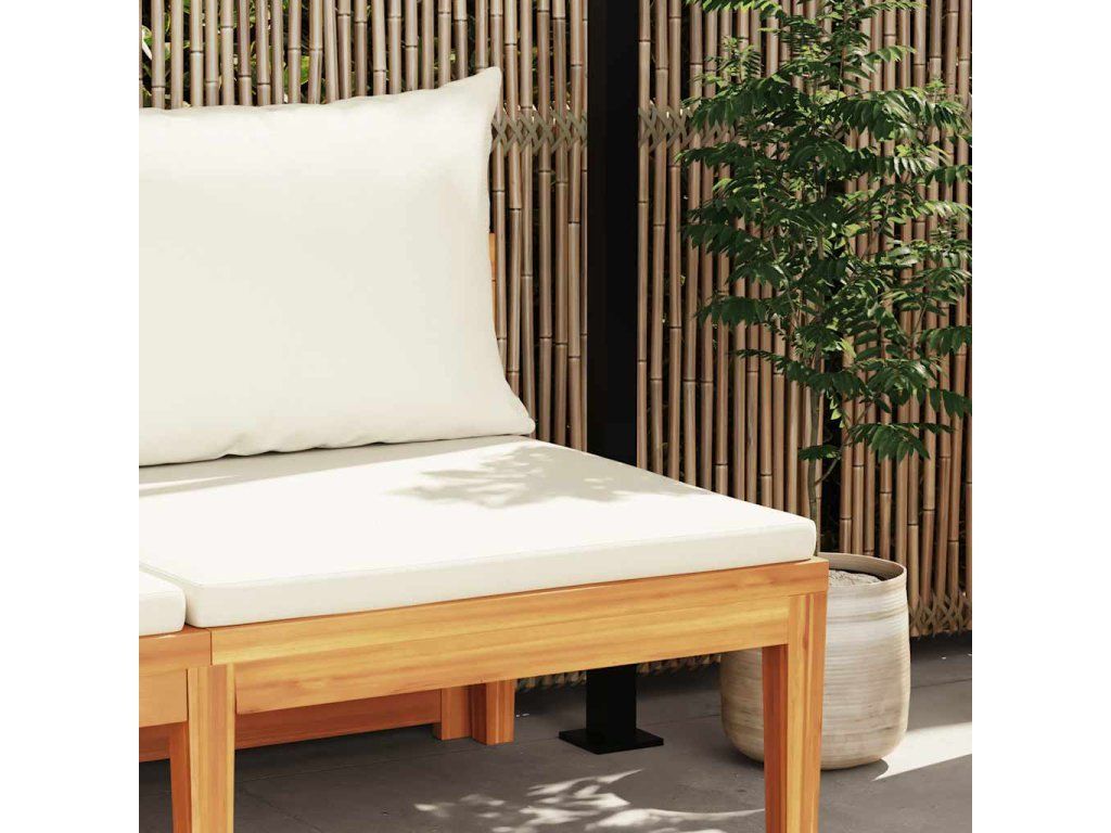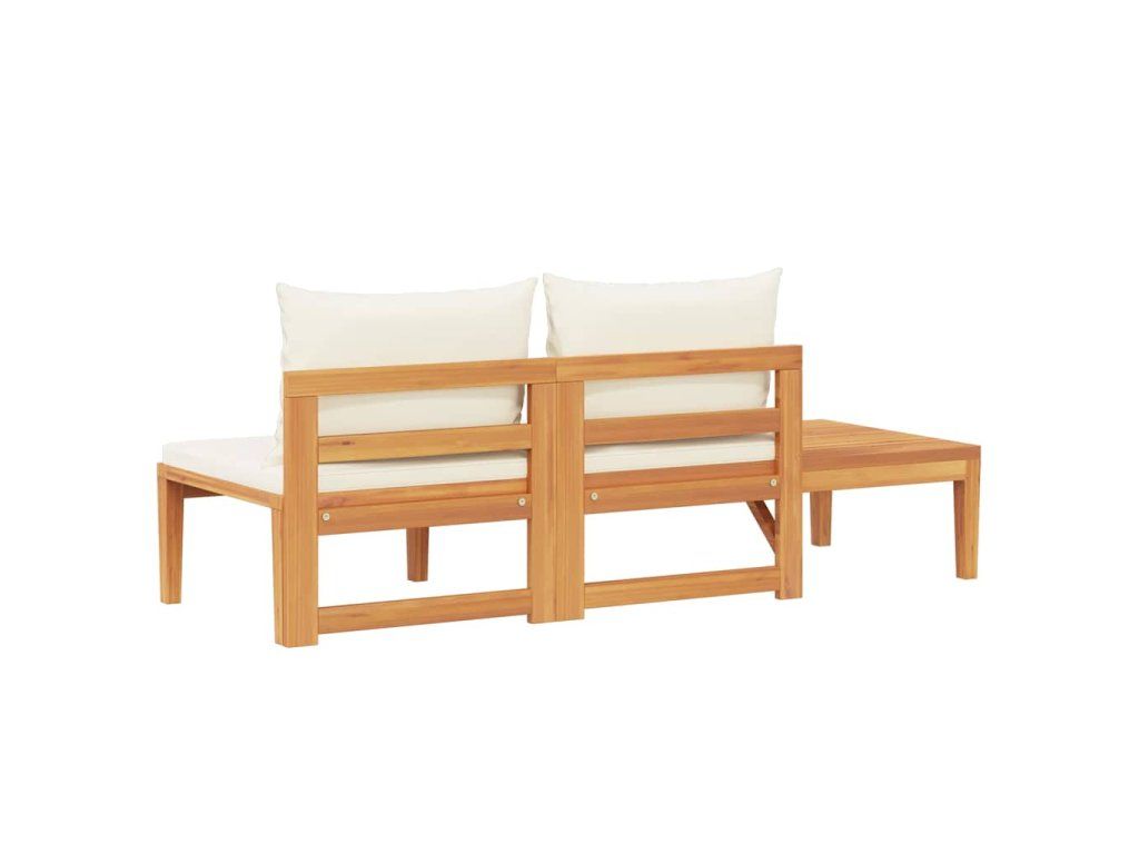 vidaXL Záhradná lavica so stolom a krémovo-bielymi podložkami akáciový masív