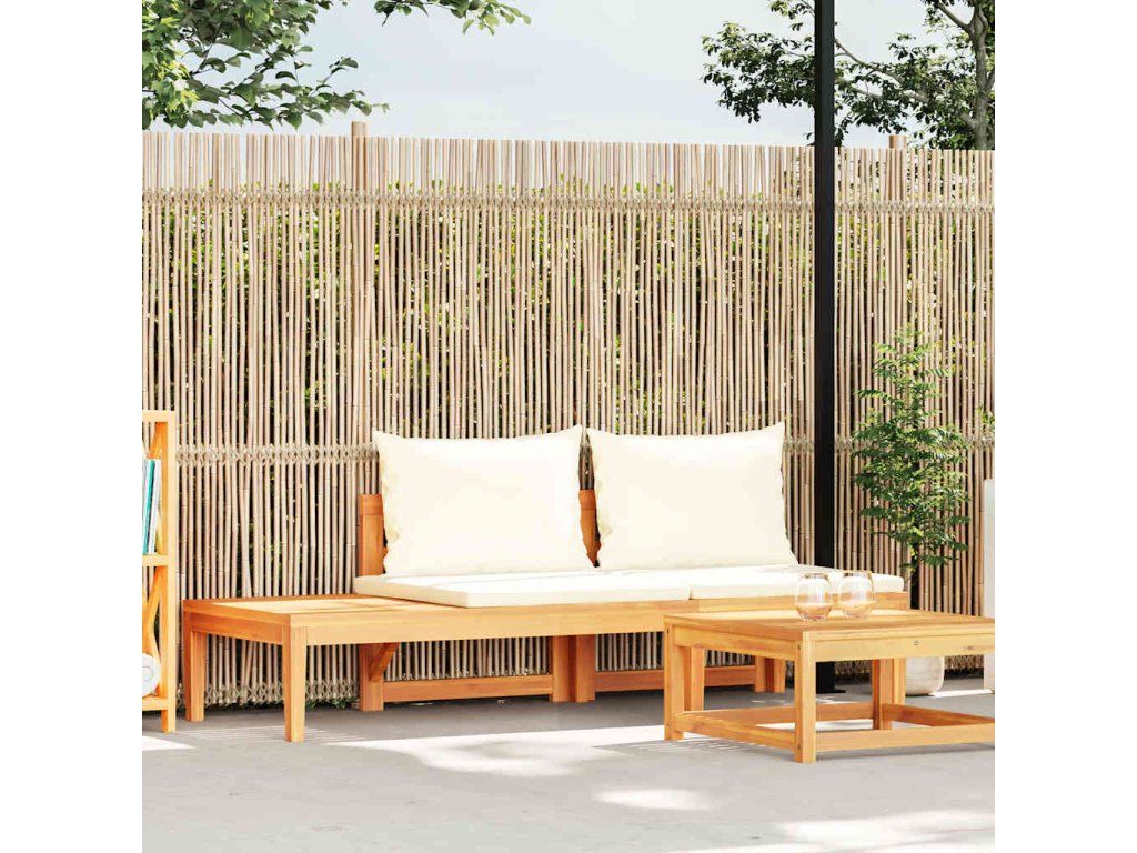 Táto záhradná lavička je vyrobená z masívneho akáciového dreva, tvrdého dreva s bohatou štruktúrou. Táto krásne navrhnutá vonkajšia lavica je stabilná, odolná a pútavá. Vďaka vynikajúcemu remeselnému spracovaniu a krásnej štruktúre dreva sa každý kus mierne líši od ostatných kusov. Pribalené sedáky a vankúše poskytnú dokonalé pohodlie pri odpočinku. Opierka rúk sa dá namontovať na ľavú aj pravú stranu.