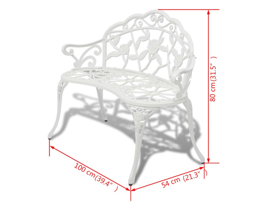 Táto záhradná lavička je vyrobená z vysokokvalitného odlievaného hliníka, vďaka čomu je odolná voči poveternostným vplyvom a veľmi trvácna. Nohy z odlievaného železa jej dodávajú potrebnú pevnosť. Precízne ornamenty a očarujúci motív kvetov prinesú do každej záhrady či iných vonkajších priestorov punc elegancie. Táto lavička do parku poskytuje miesto pre 2 osoby.