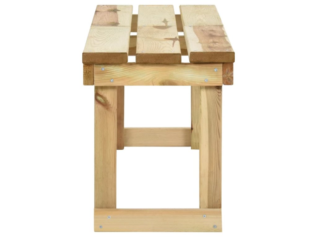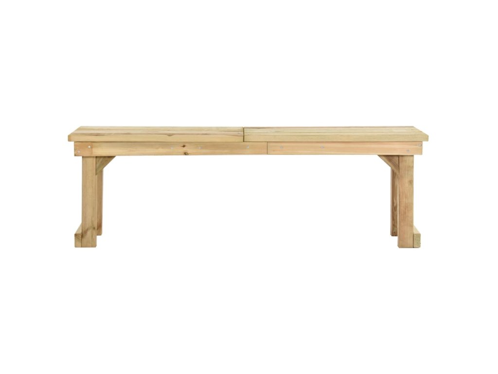 Pevná lavička je vyrobená z impregnovaného borovicového dreva, vďaka čomu je trvácna a odolná voči hnilobe a poveternostným vplyvom.