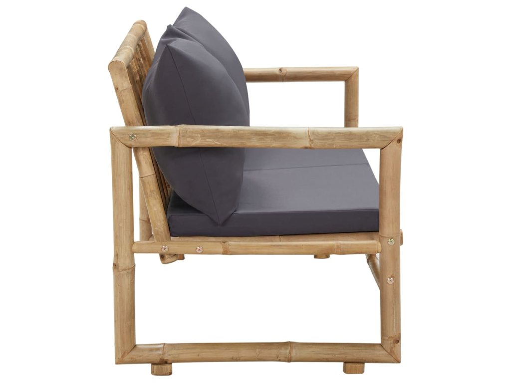 Táto lavica je vyrobená z bambusu, vďaka čomu je pevná a ľahko sa čistí. Roštová sedačka a operadlo ponúkajú vynikajúcu oporu. Polstrované vankúše navyše zvyšujú jej pohodlie. Dobrá prírodne vyzerajúca lavička dodá vašej záhrade alebo inému vonkajšiemu priestoru vidiecku atmosféru.
