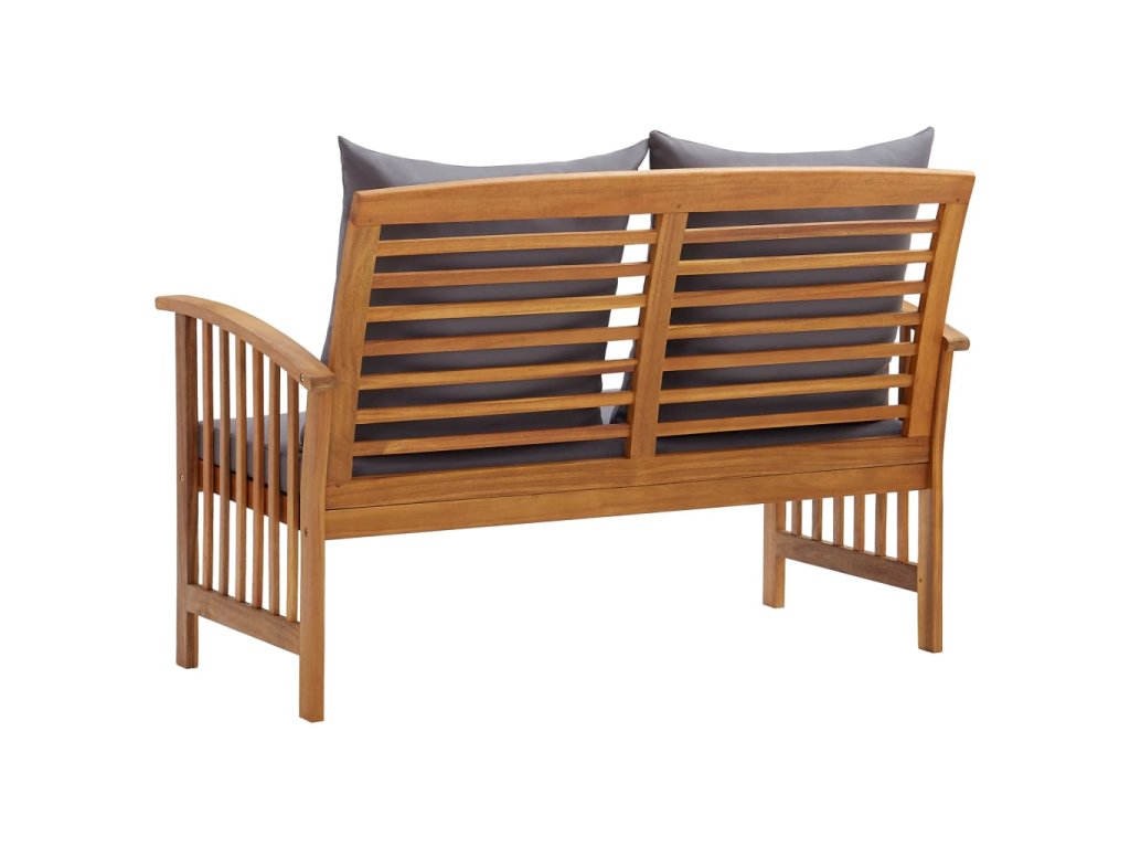 Vonkajšia lavička je vyrobená z akáciového masívu s olejovým náterom, vďaka čomu je stabilná a trvácna. Vďaka remeselnému opracovaniu a krásnej textúre dreva je každý kus nábytku jedinečný a trochu odlišný od ostatných. Podložka na sedadlo a vankúš na operadlo sa postarajú o to, aby sa vám na lavičke sedelo naozaj pohodlne. Operadlo a opierky na ruky poskytujú optimálny komfort.