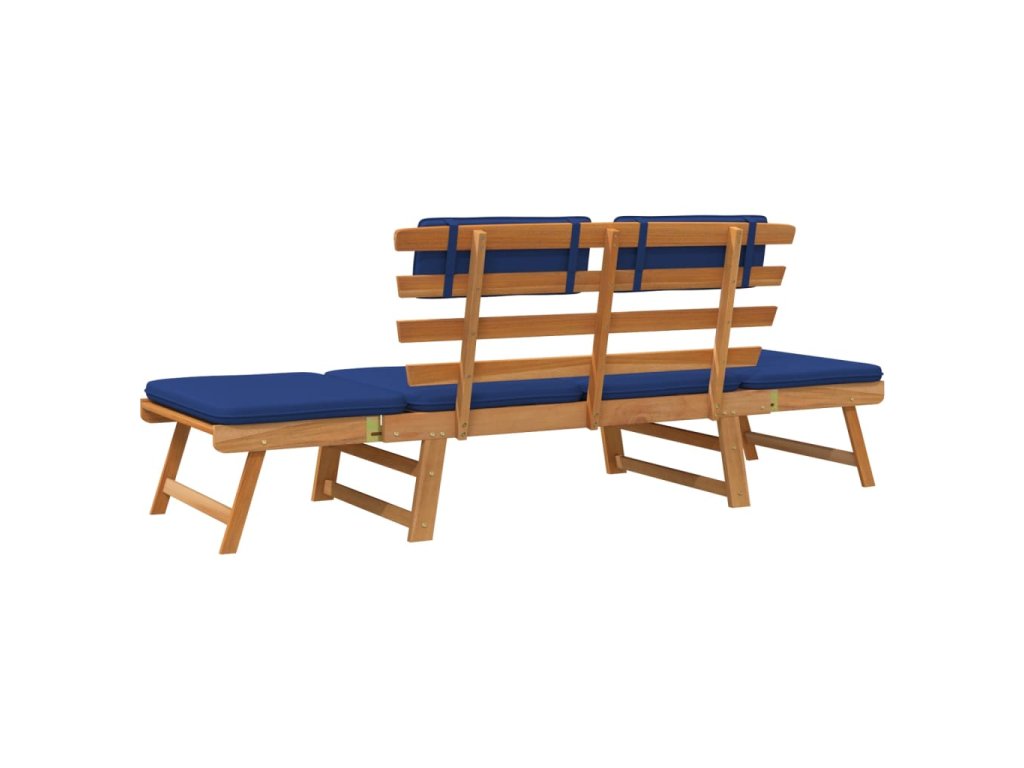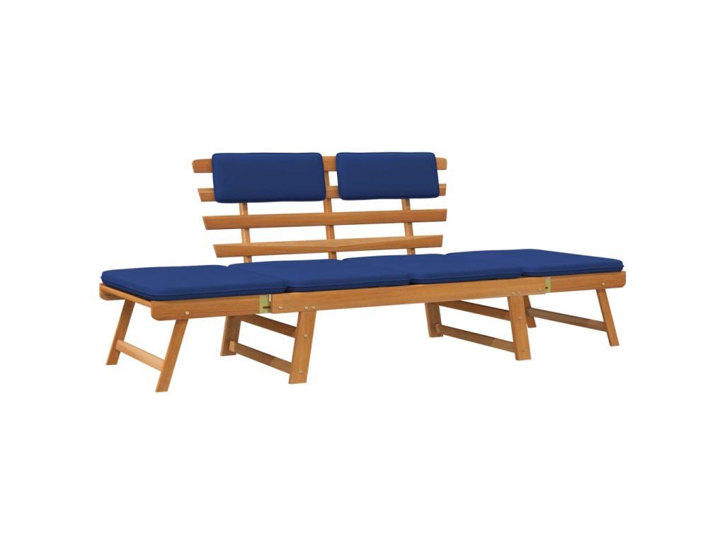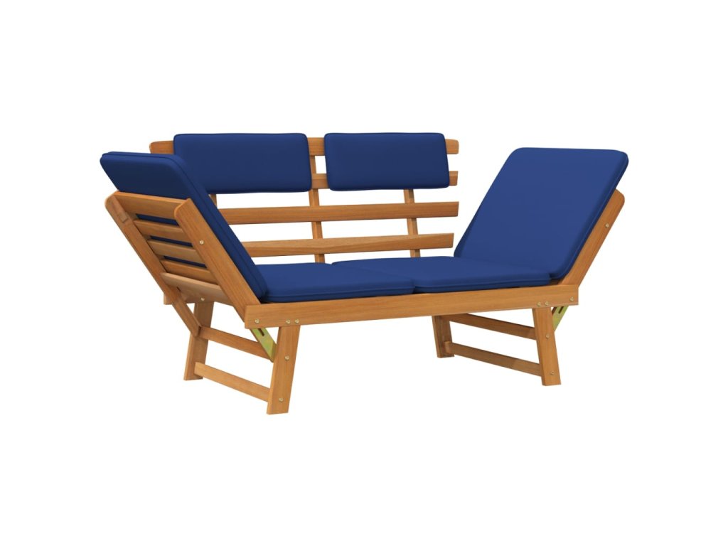 Záhradné ležadlo sa dá rýchlo a ľahko premeniť z lavice na pohovku a naopak pomocou nastaviteľných bočných dielov. Hrubé, odnímateľné podložky na operadlo a sedadlo poskytujú pohodlie pri sedení a ležaní. Poťahy podložiek sa dajú jednoducho zvliecť a oprať. Lavička je vyrobená z masívneho akáciového dreva, tvrdého dreva s bohatou štruktúrou. Je odolná voči poveternostným vplyvom a je vhodná na vonkajšie použitie.