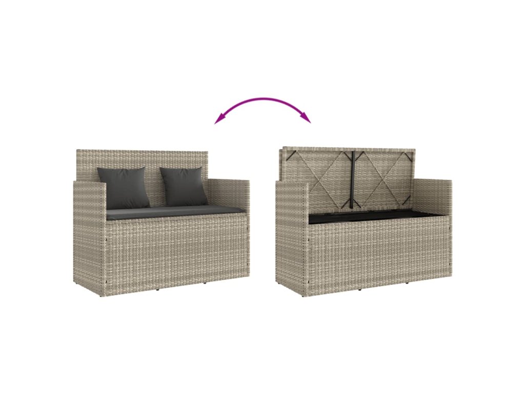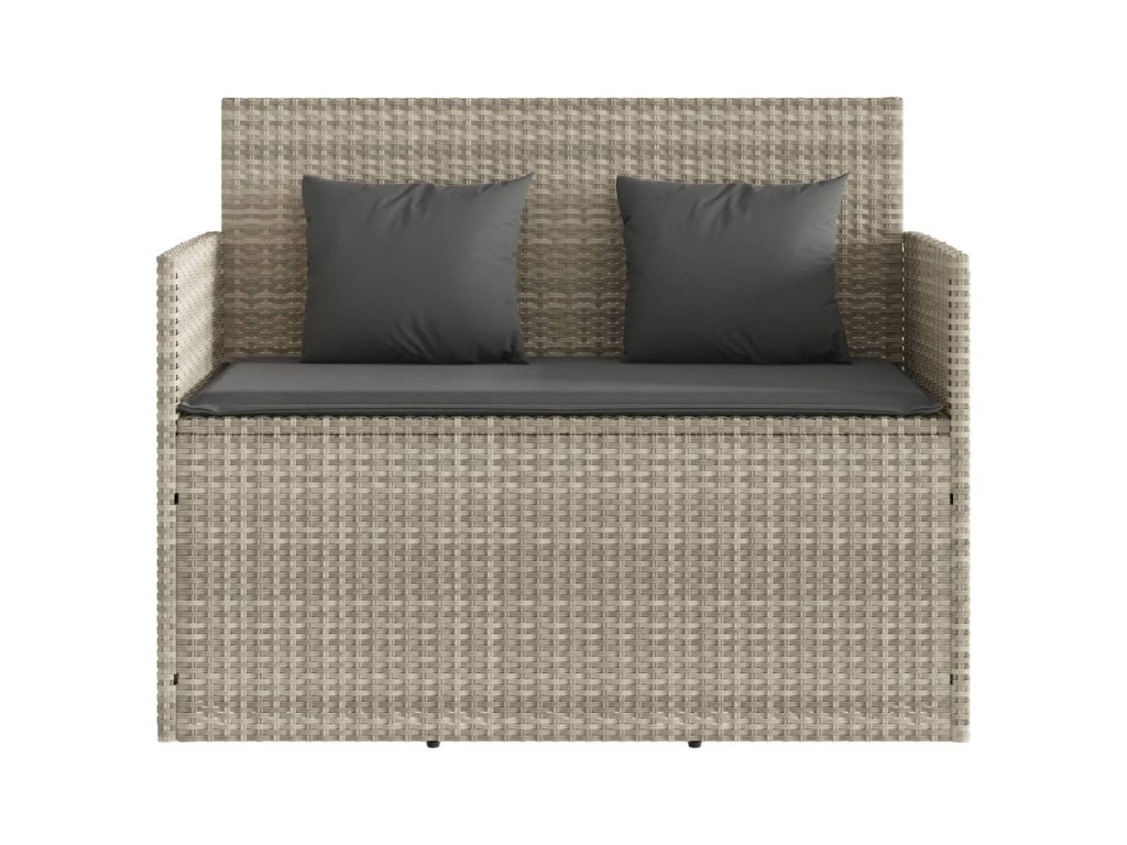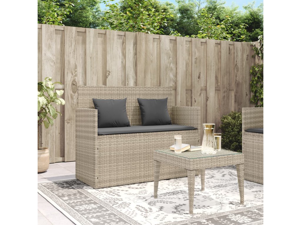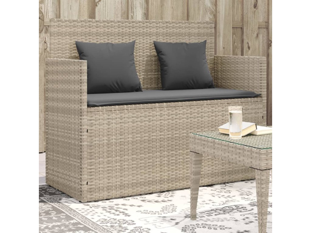 vidaXL Záhradná lavička s podložkami bledosivá polyratan