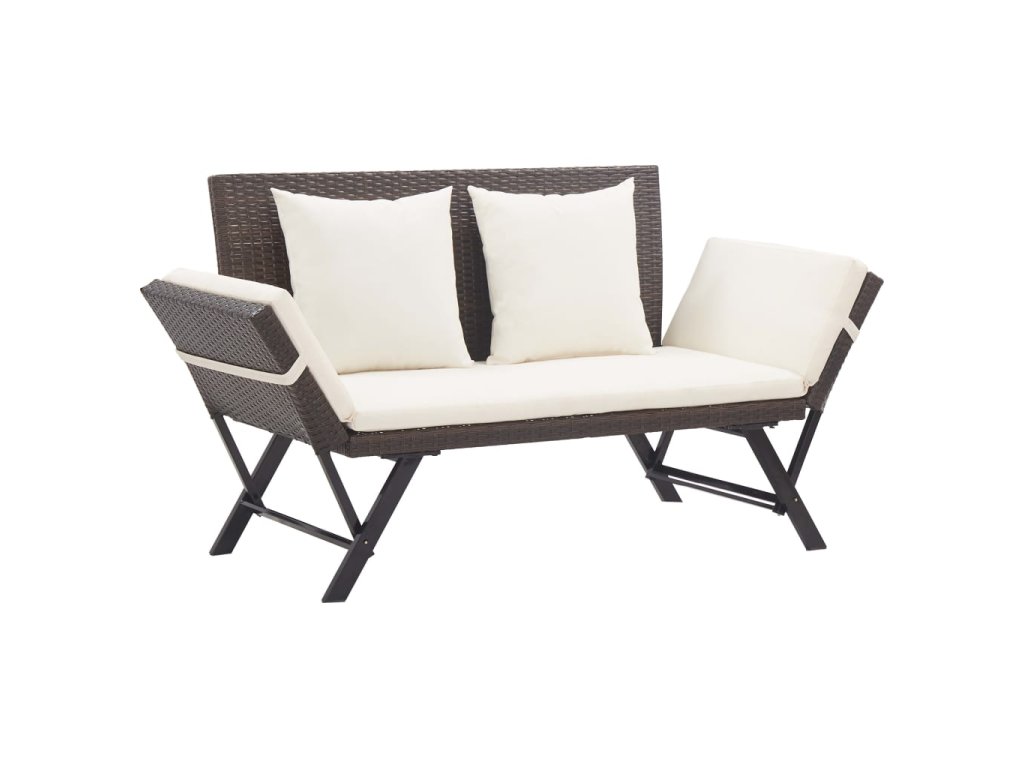 vidaXL Záhradná lavička s vankúšmi hnedá 176 cm polyratan
