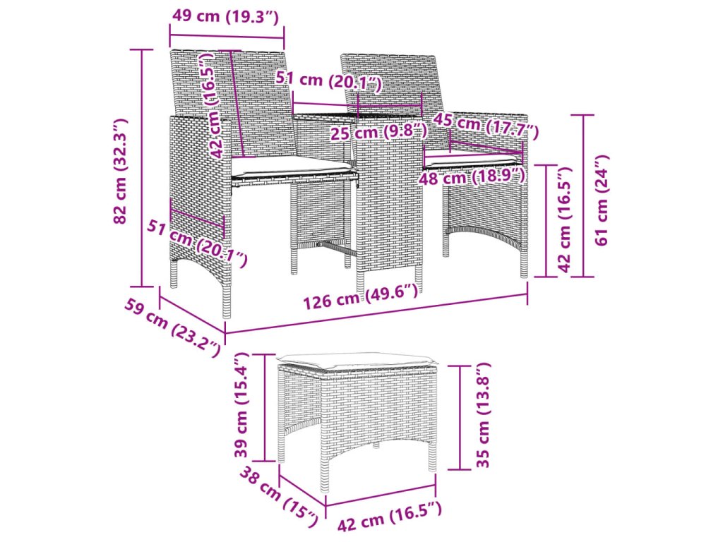 - Robustný a stabilný rám: Oceľový rám s práškovým nástrekom zaisťuje, že záhradný nábytok je pevný a stabilný pre každodenné vonkajšie použitie.
