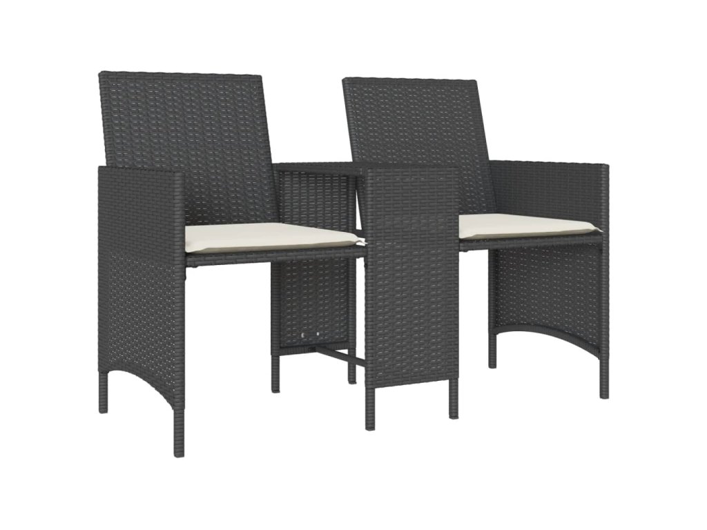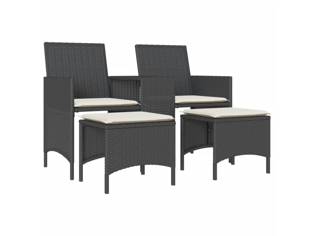 vidaXL Záhradná pohovka, 2-miestna, stôl a taburetky, čierna polyratan