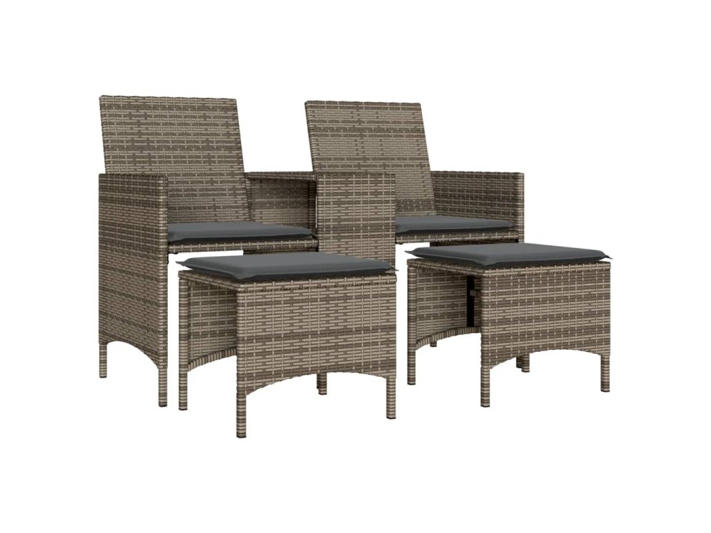 vidaXL Záhradná pohovka, 2-miestna, stôl a taburetky, sivá, polyratan