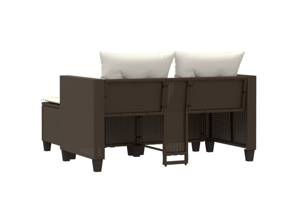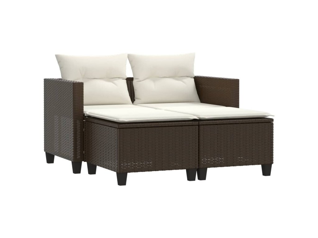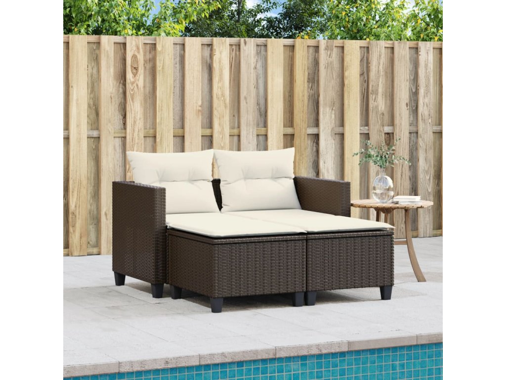 vidaXL Záhradná pohovka, 2-miestna s taburetkami, hnedá, polyratan