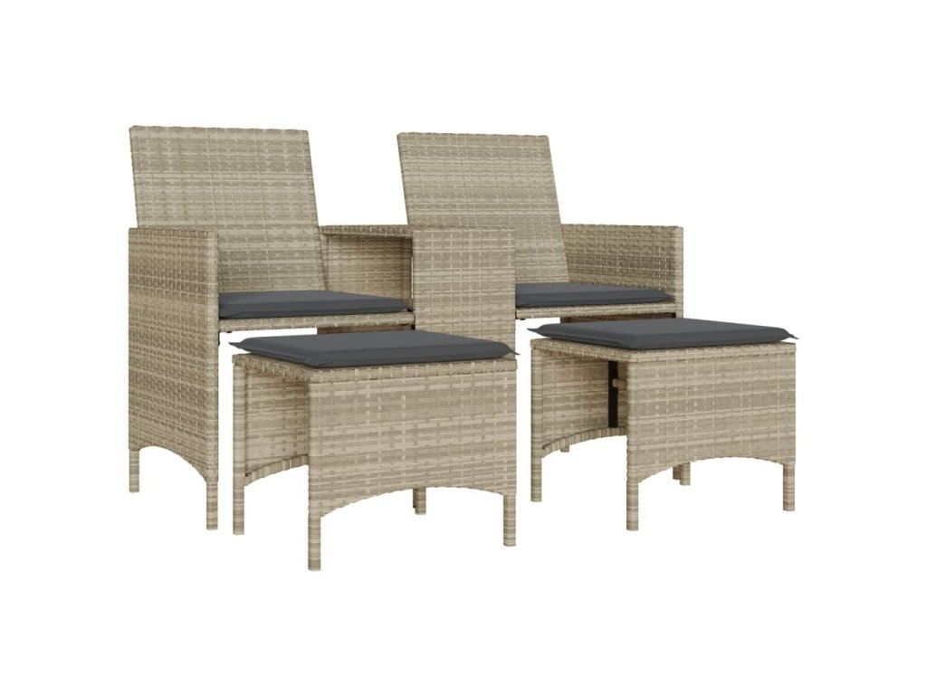 vidaXL Záhradná pohovka 2-miestna, stôl+taburetky svetlosivá polyratan