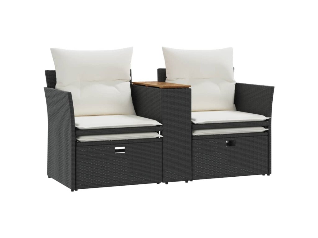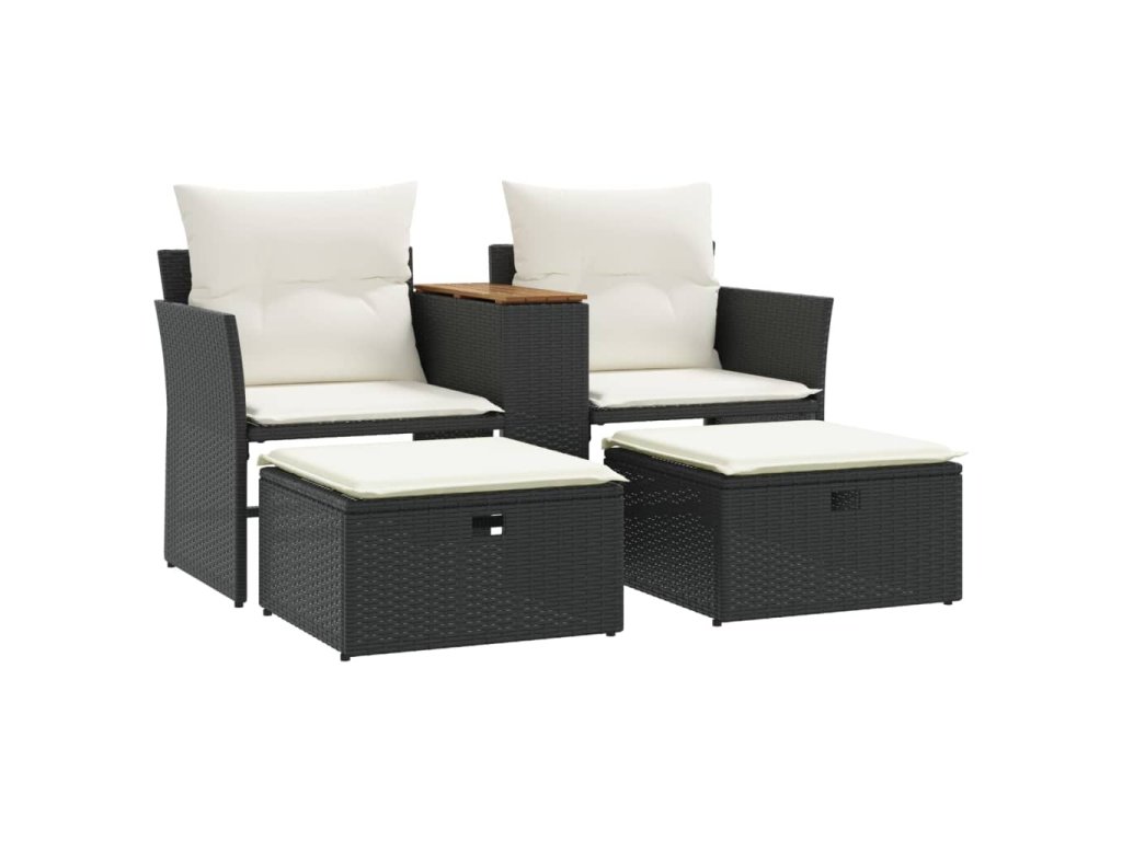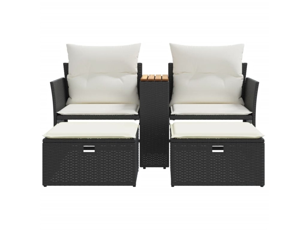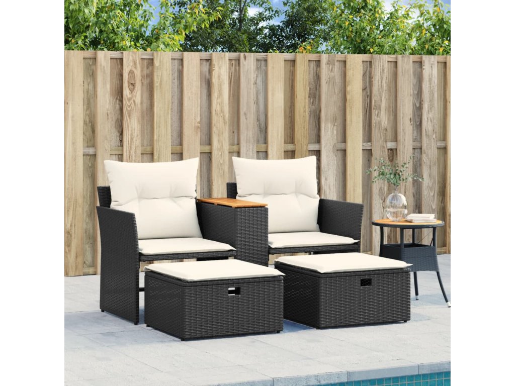 vidaXL Záhradná pohovka 2-miestna s taburetkami čierna polyratan