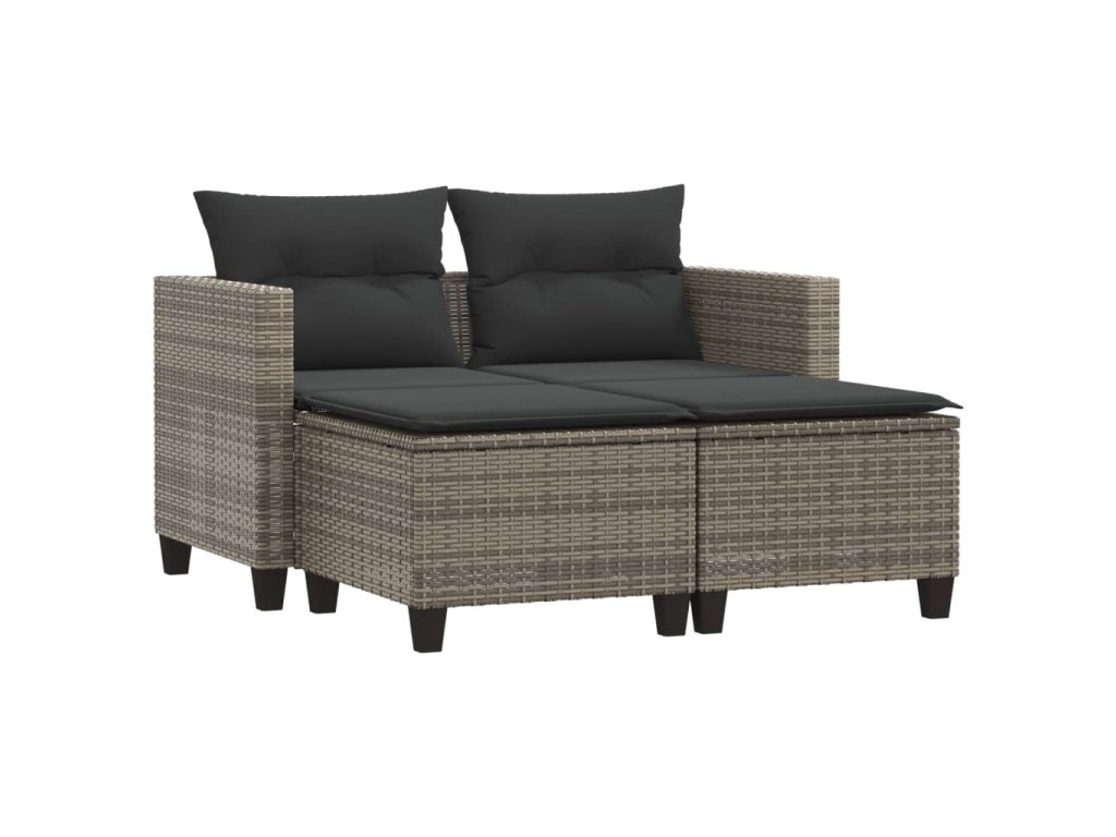 vidaXL Záhradná pohovka 2-miestna s taburetkami sivá polyratan