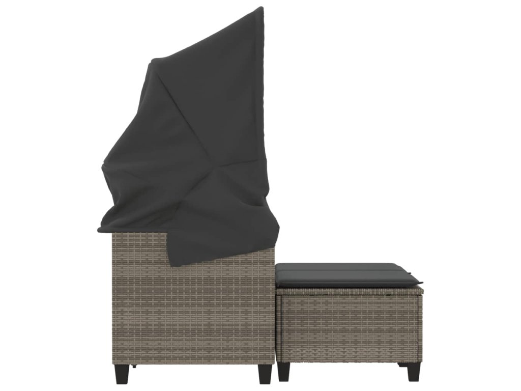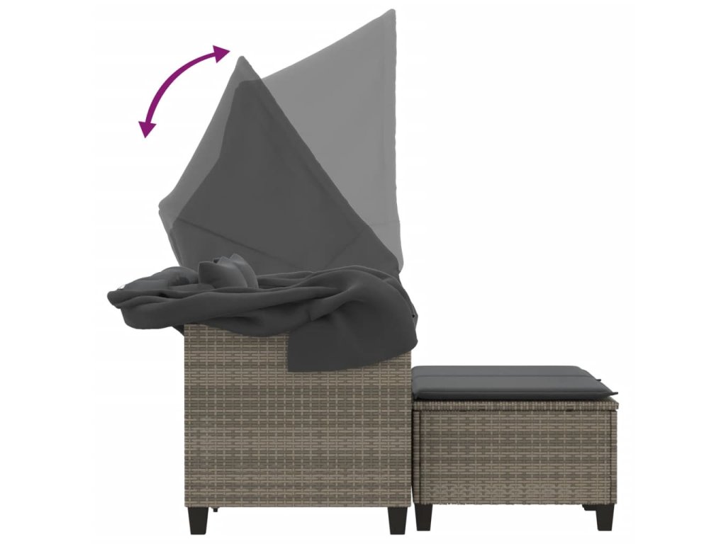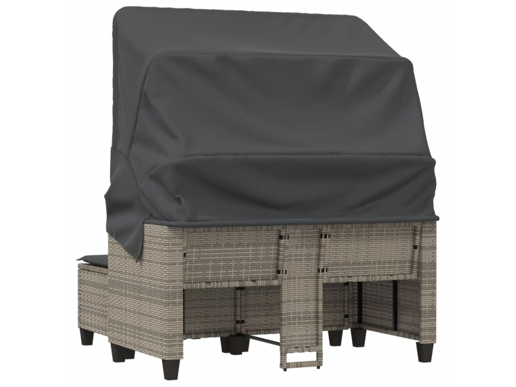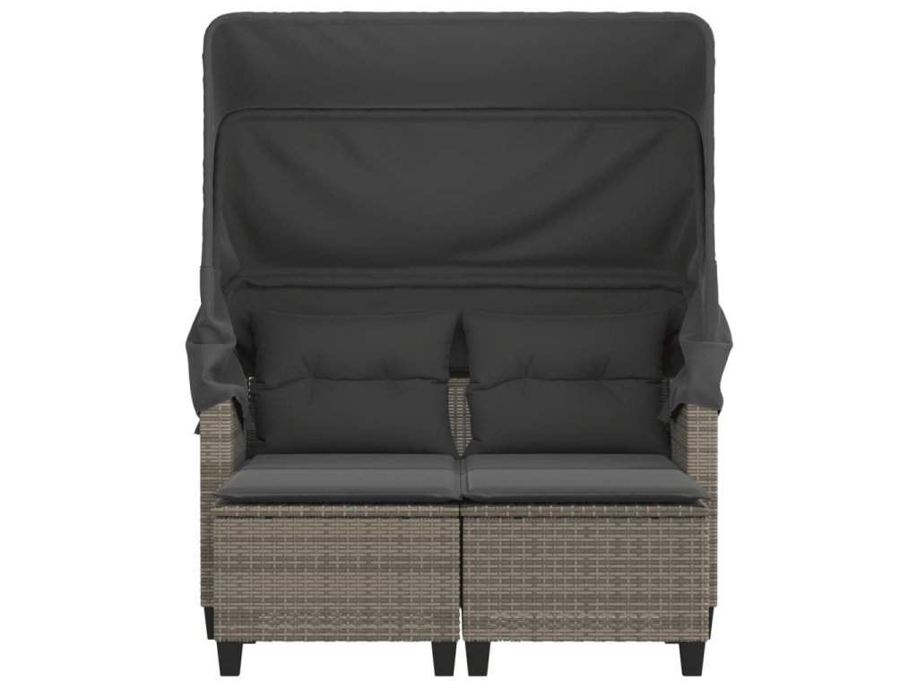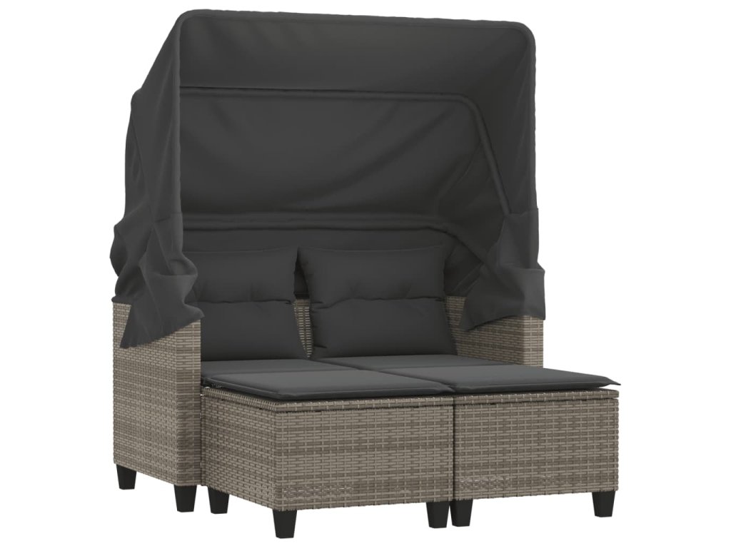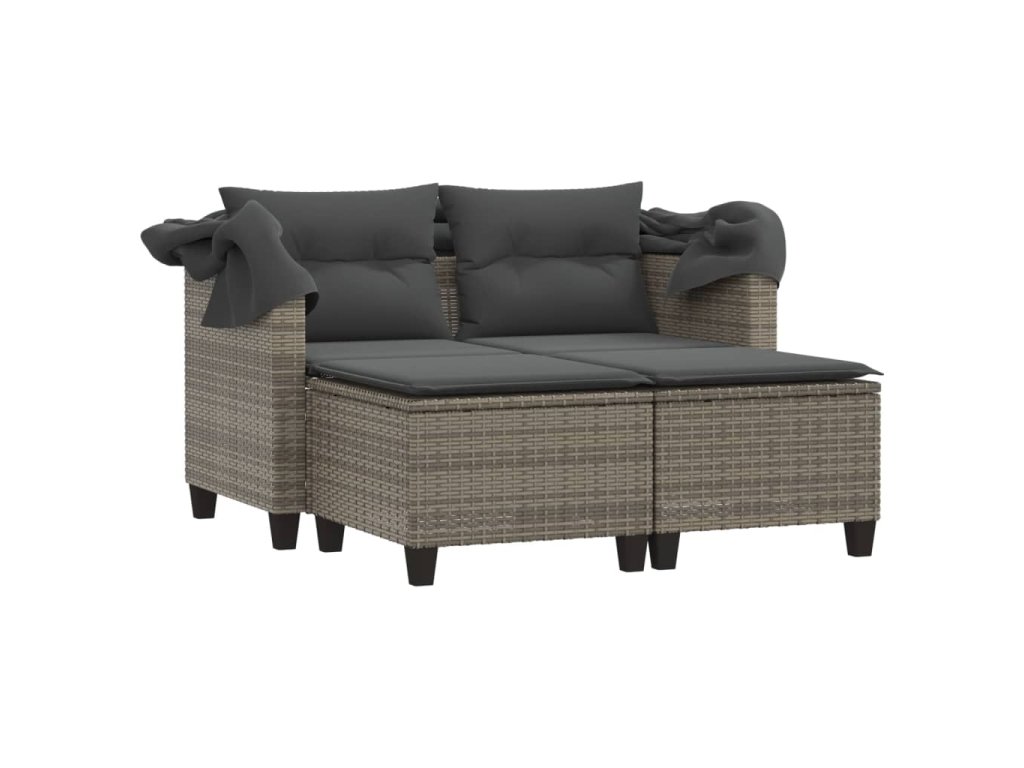 vidaXL Záhradná pohovka 2-miestna strieška a taburetky sivá polyratan