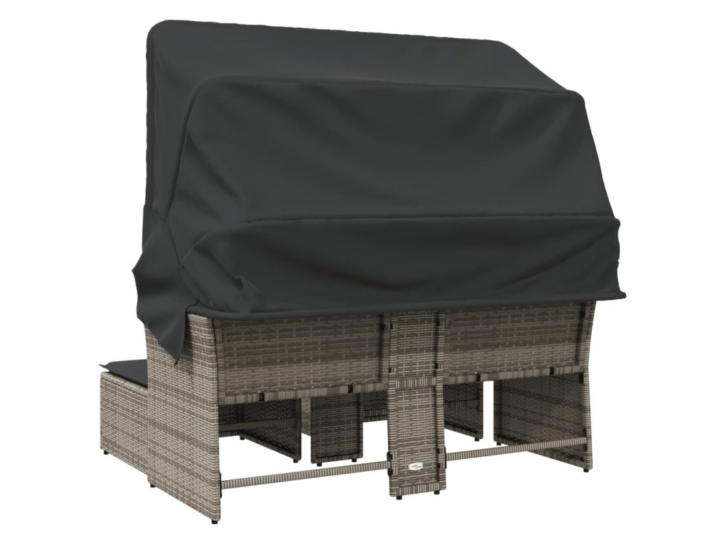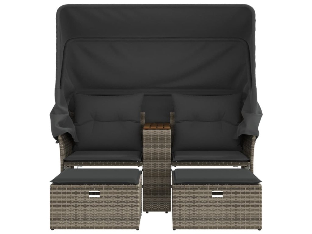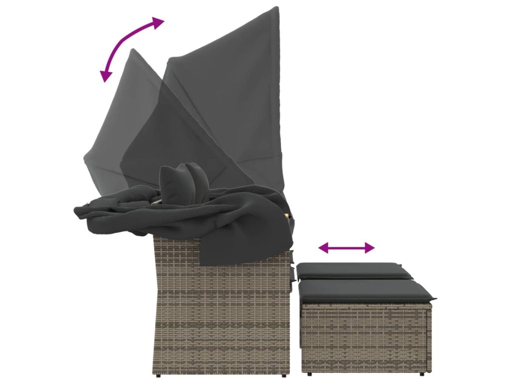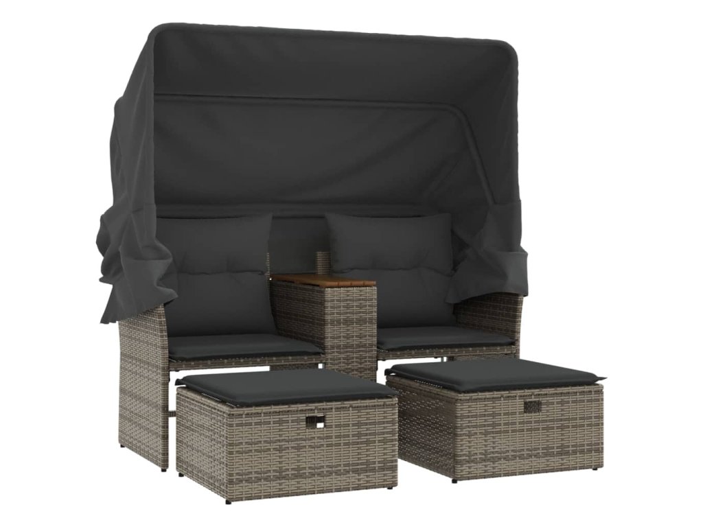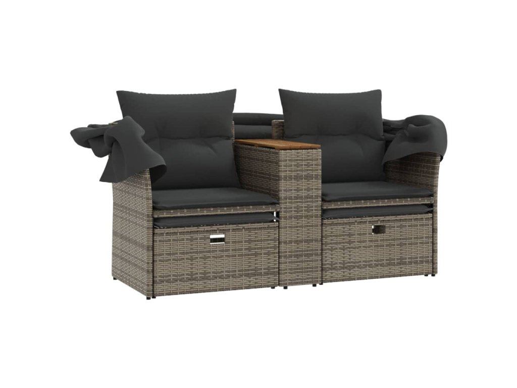 vidaXL Záhradná pohovka 2-miestna strieška a taburetky sivá polyratan