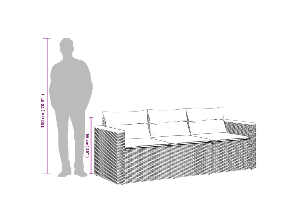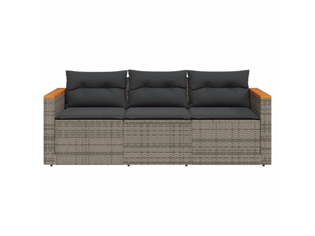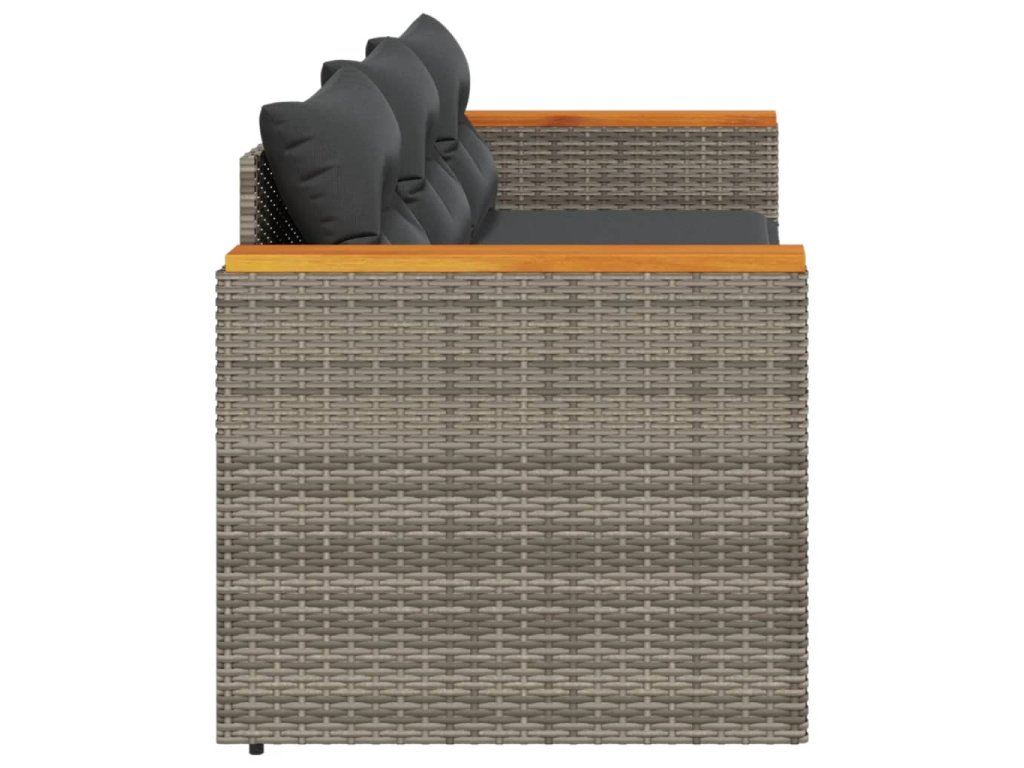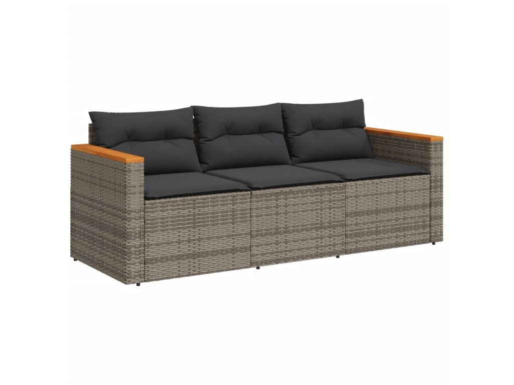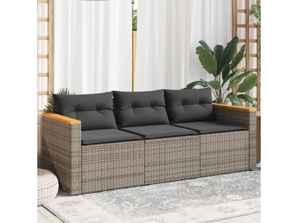 vidaXL Záhradná pohovka s podložkami, 3-miestna, sivá, polyratan
