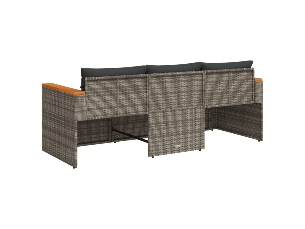 - Materiál: PE (polyetylén) ratan, oceľ s práškovou povrchovou úpravou, akáciový masív s prírodným olejovým náterom