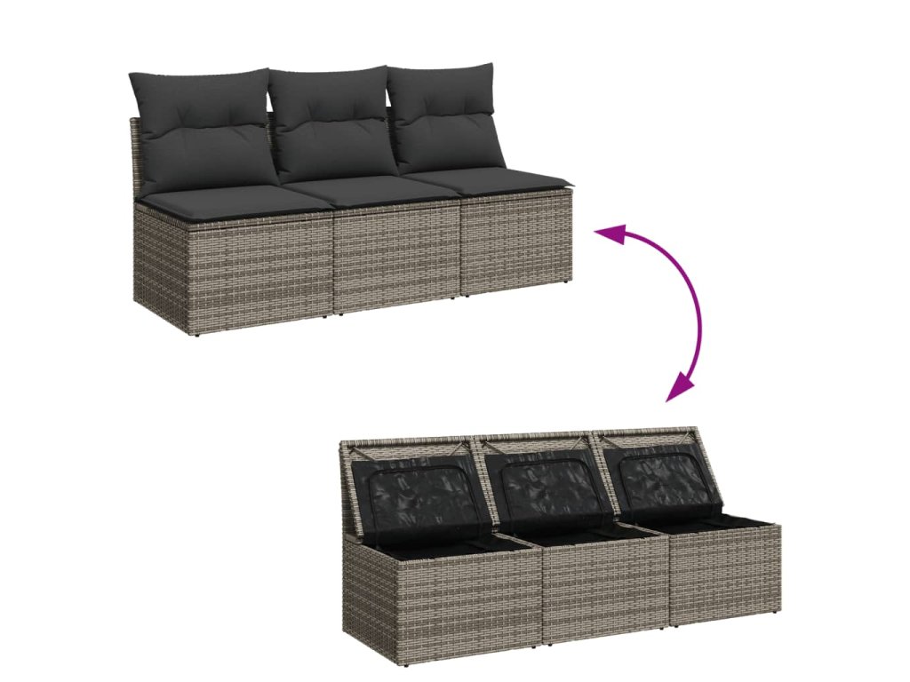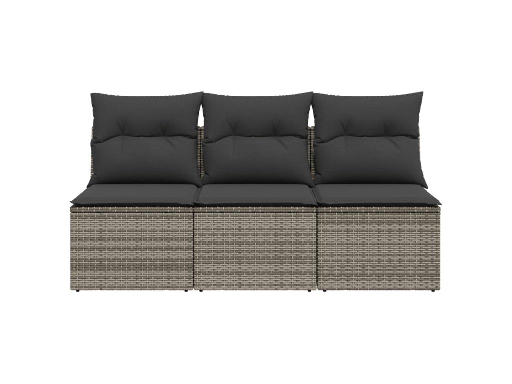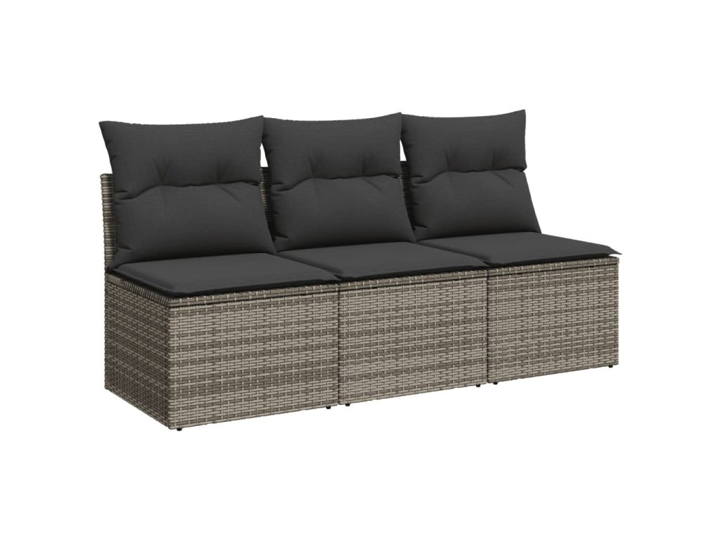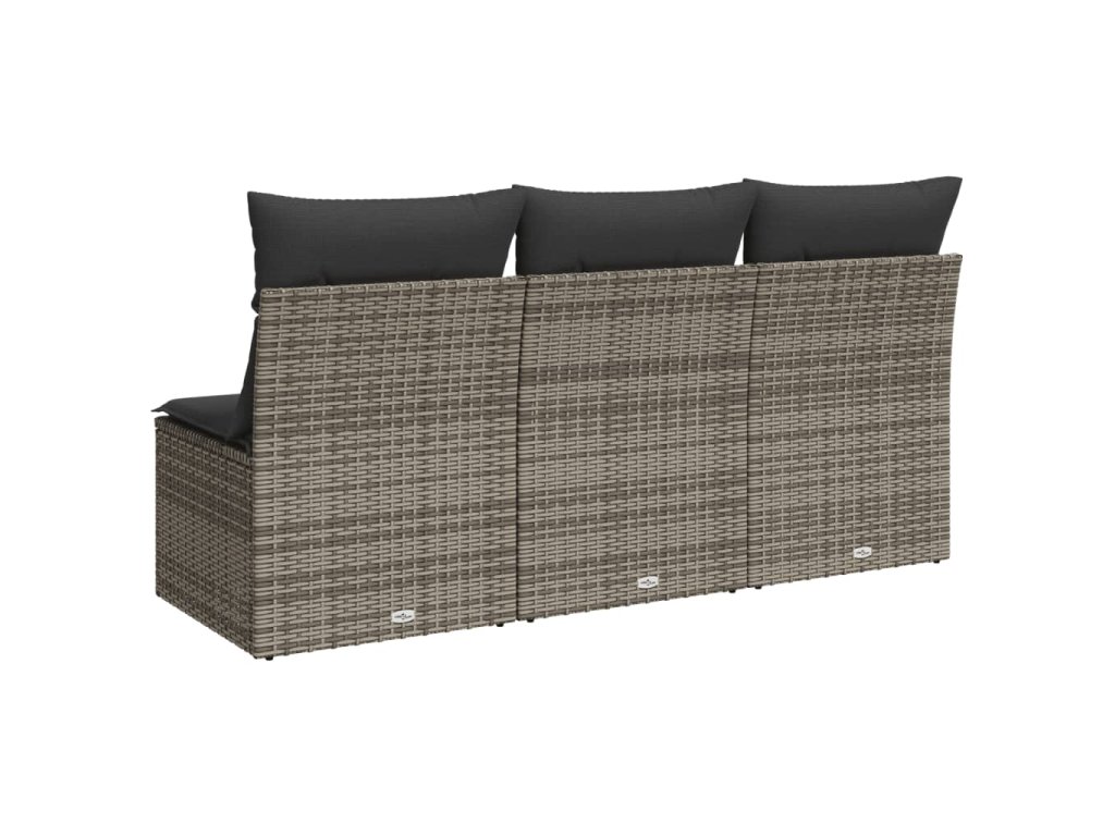 vidaXL Záhradná pohovka s podložkami, 3-miestna, sivá, polyratan