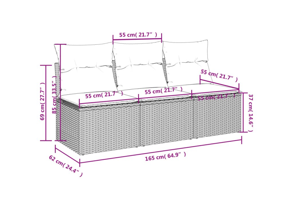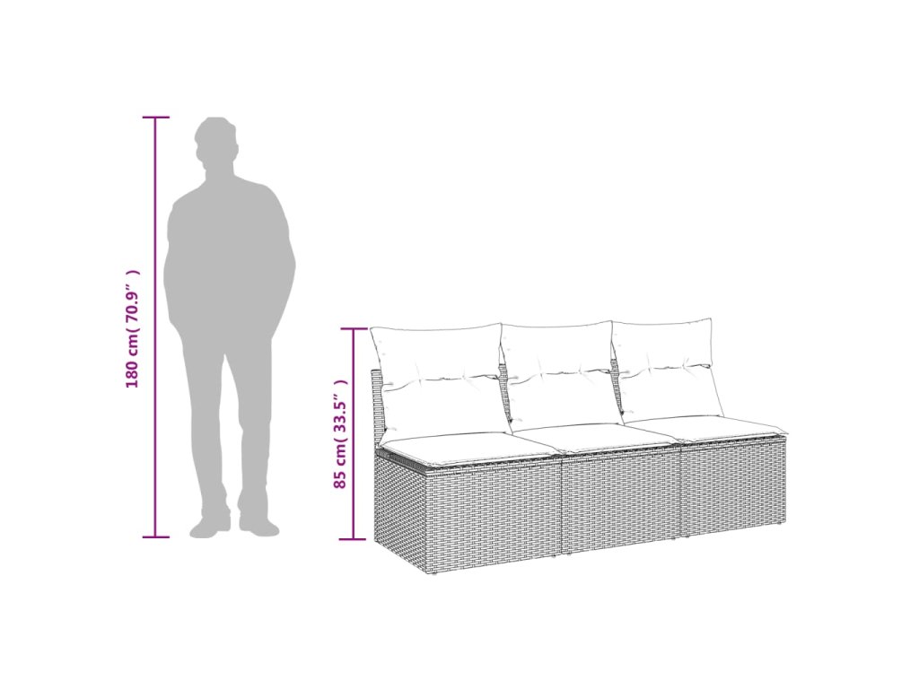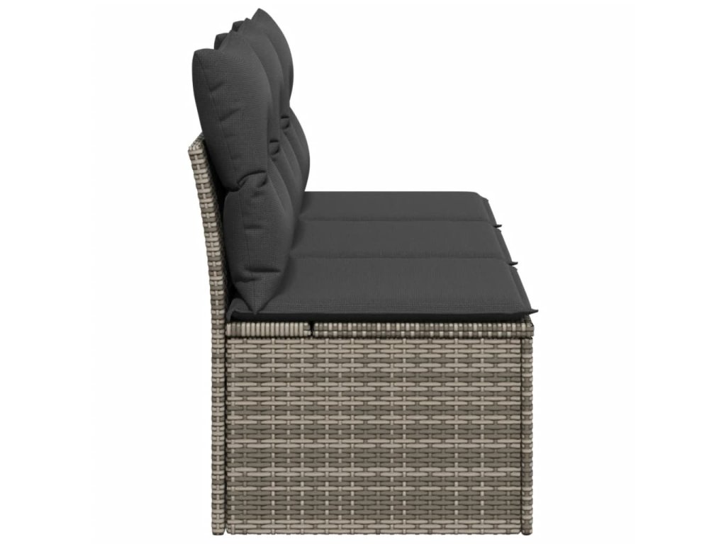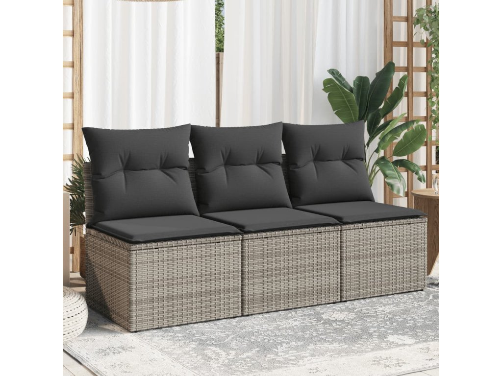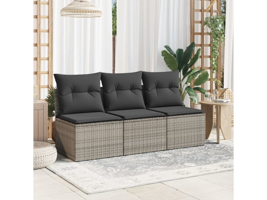 vidaXL Záhradná pohovka s podložkami, 3-miestna, sivá, polyratan