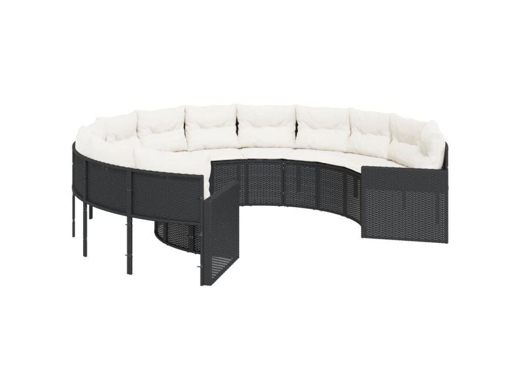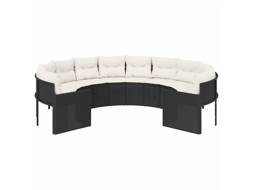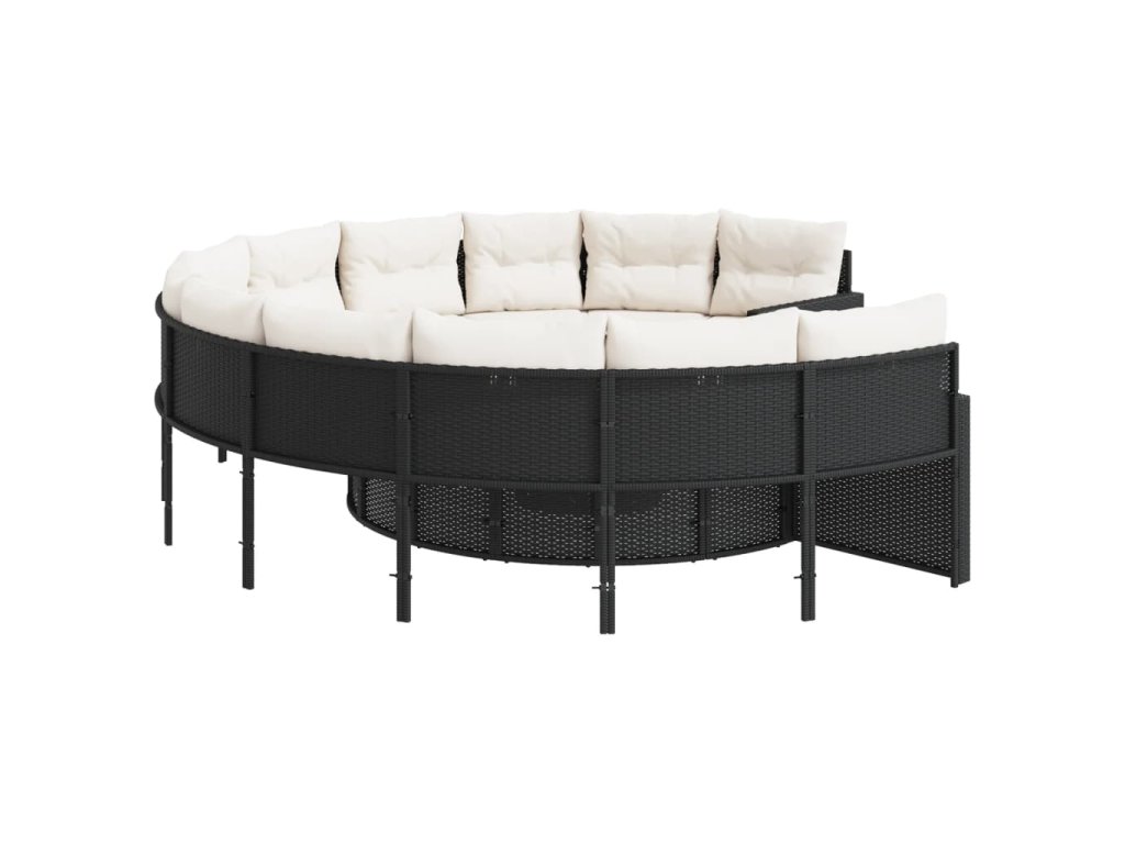 vidaXL Záhradná pohovka s podložkami okrúhla čierna polyratanová