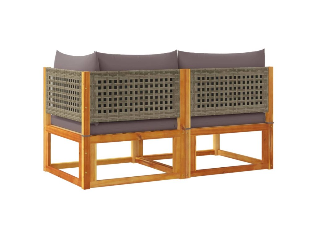 vidaXL Záhradná pohovka s vankúšmi, 2-miestna, drevo, akácia a ratan