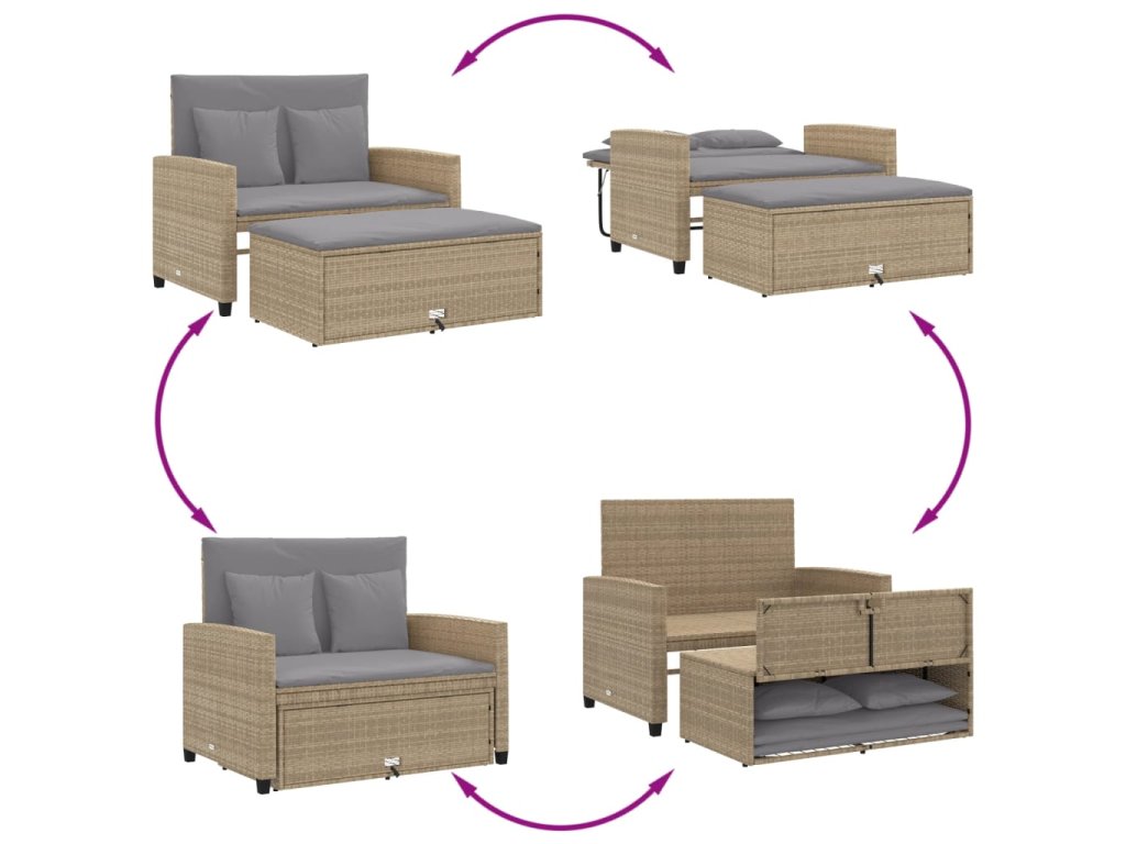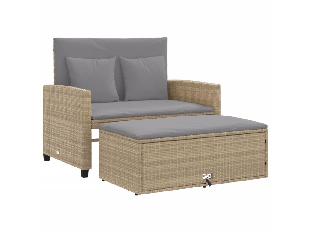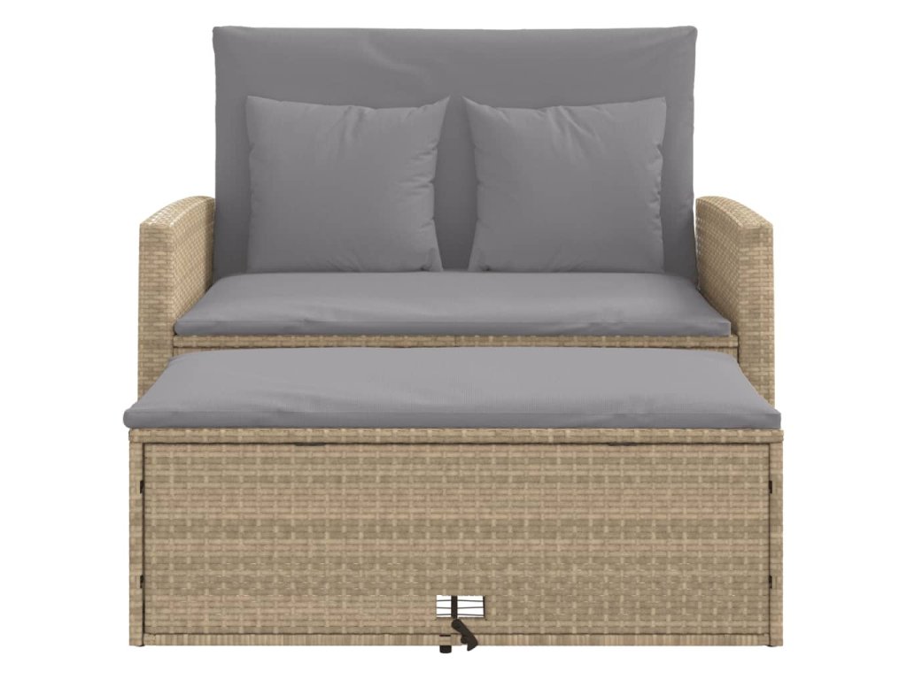 - Všestranná funkčnosť: Tento vonkajší nábytok sa dá použiť ako dvojmiestna lavica alebo rozkladacia pohovka. Jednoducho ju môžete zmeniť na posteľ sklopením operadla a vytiahnutím taburetky spod lavice. Podporné panely za operadlami zvyšujú stabilitu postele.