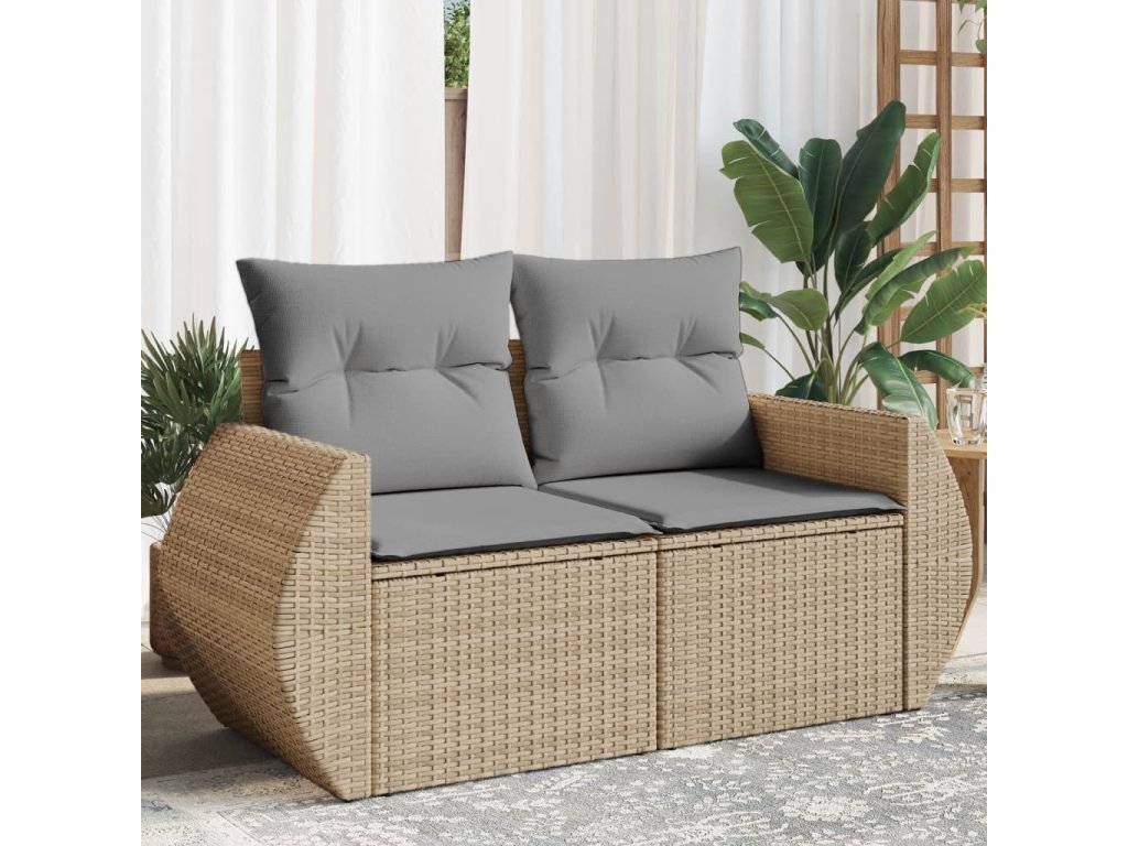 vidaXL Záhradná pohovka s vankúšmi 2-miestna béžová polyratanová