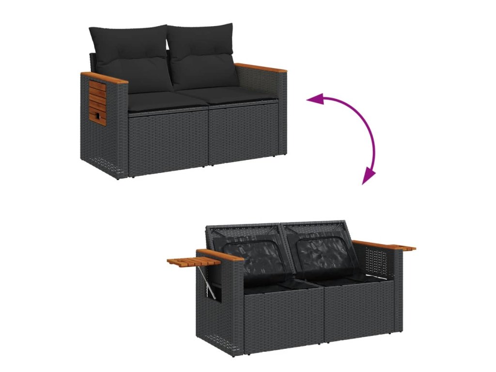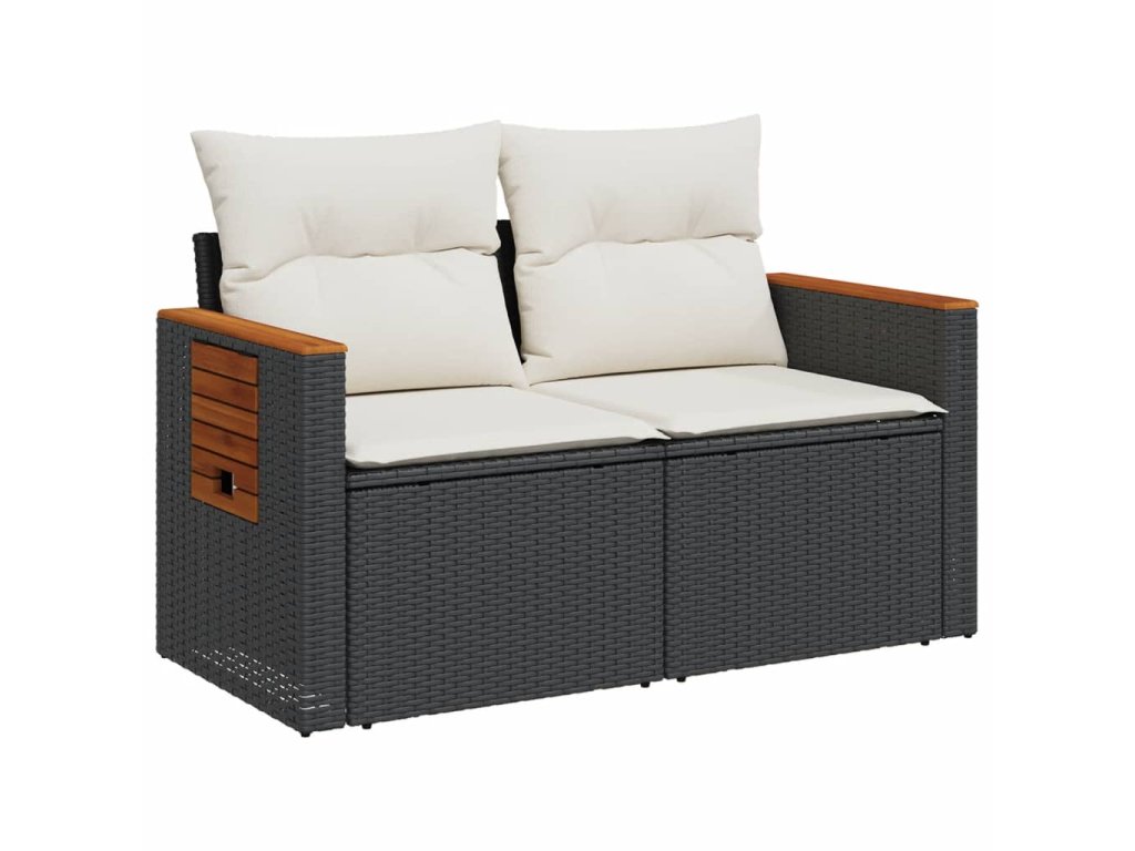vidaXL Záhradná pohovka s vankúšmi 2-miestna čierna polyrattan