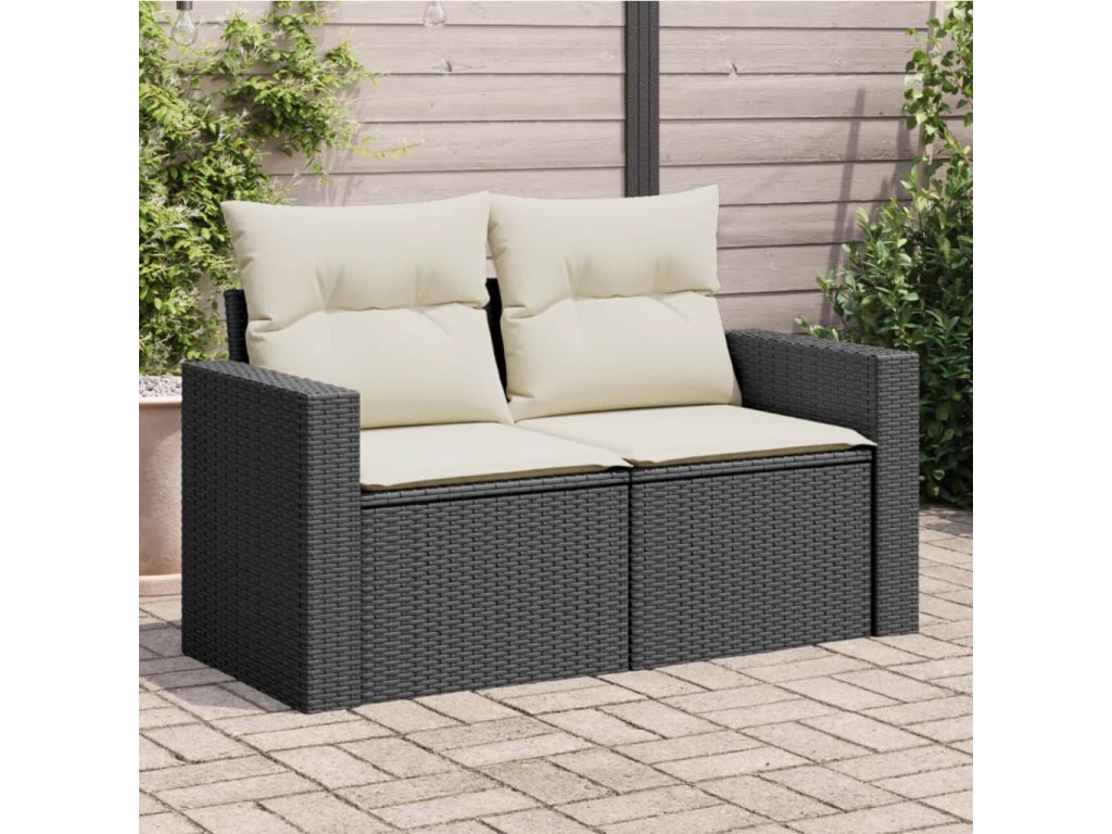 vidaXL Záhradná pohovka s vankúšmi 2-miestna čierna polyrattan