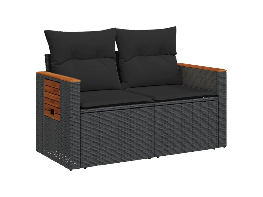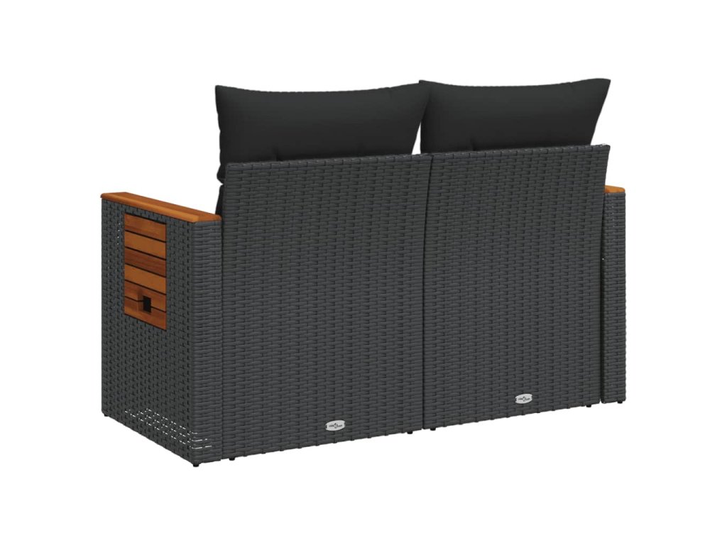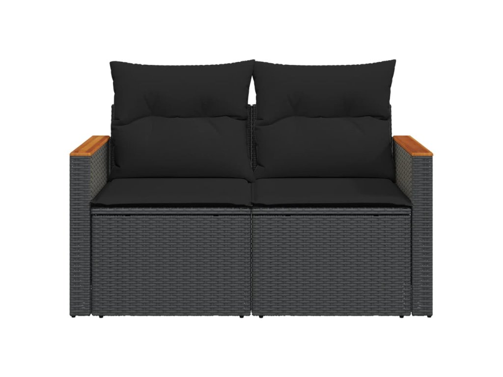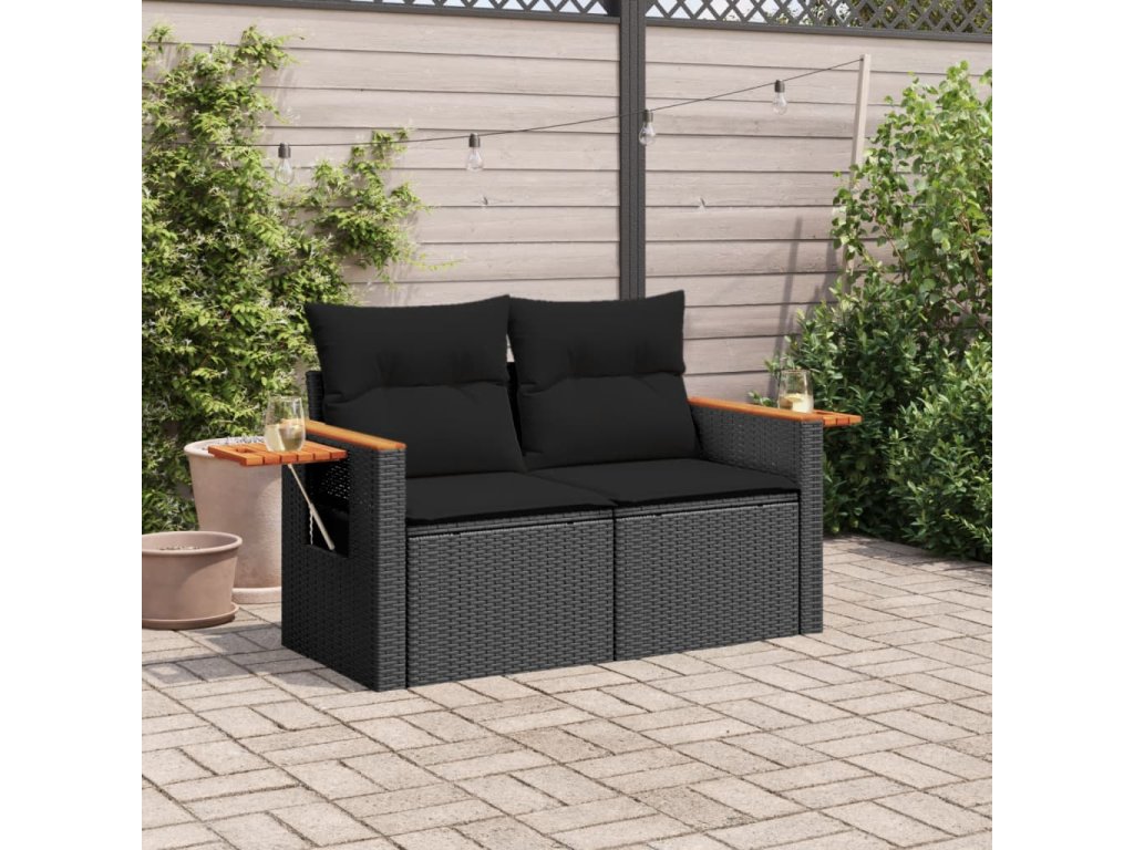 vidaXL Záhradná pohovka s vankúšmi 2-miestna čierna polyrattan