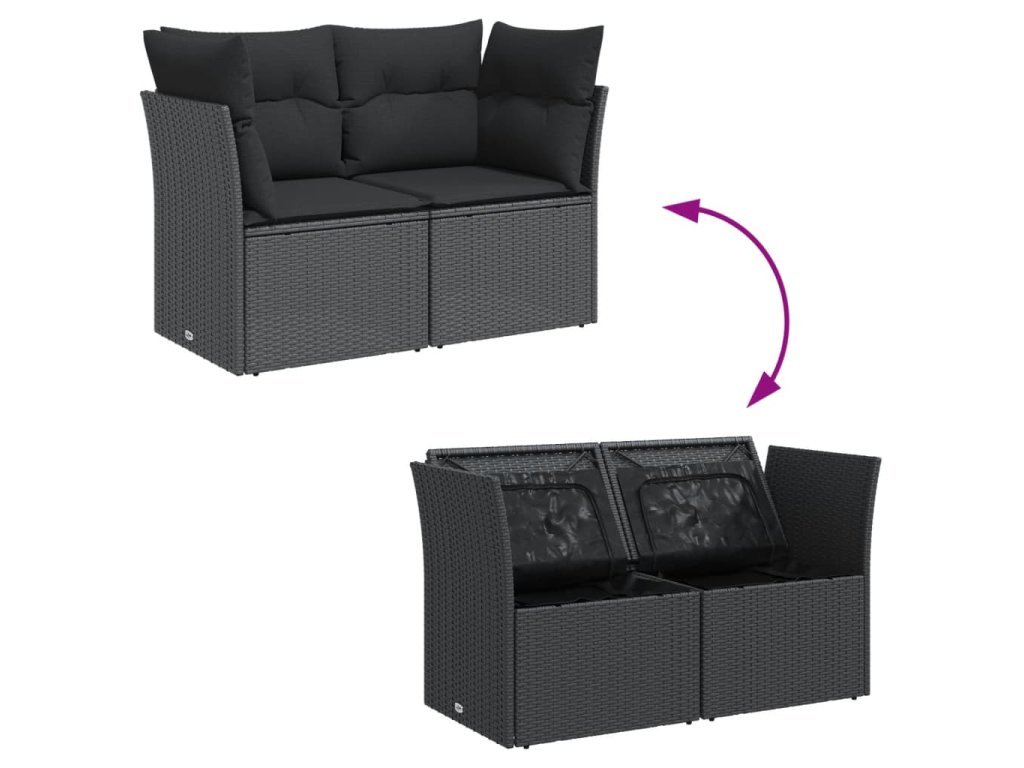 vidaXL Záhradná pohovka s vankúšmi 2-miestna čierna polyrattan