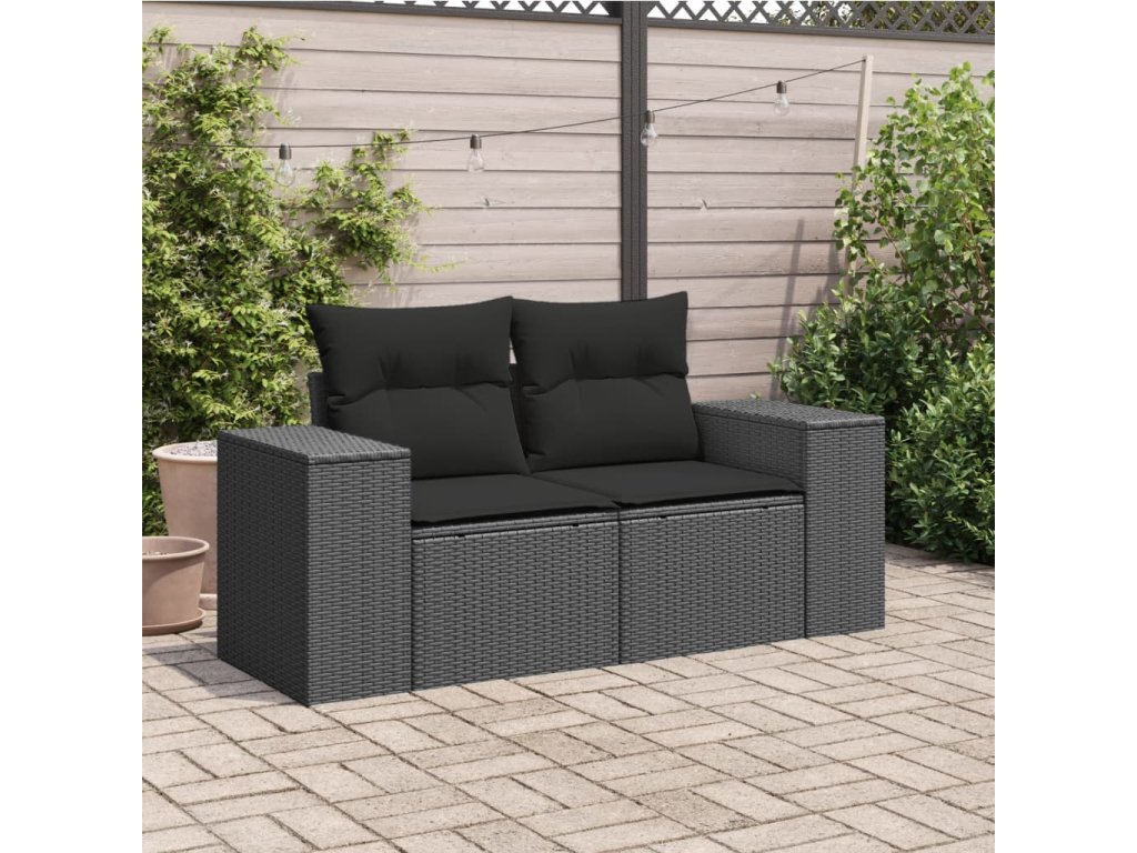 vidaXL Záhradná pohovka s vankúšmi 2-miestna čierna polyrattan