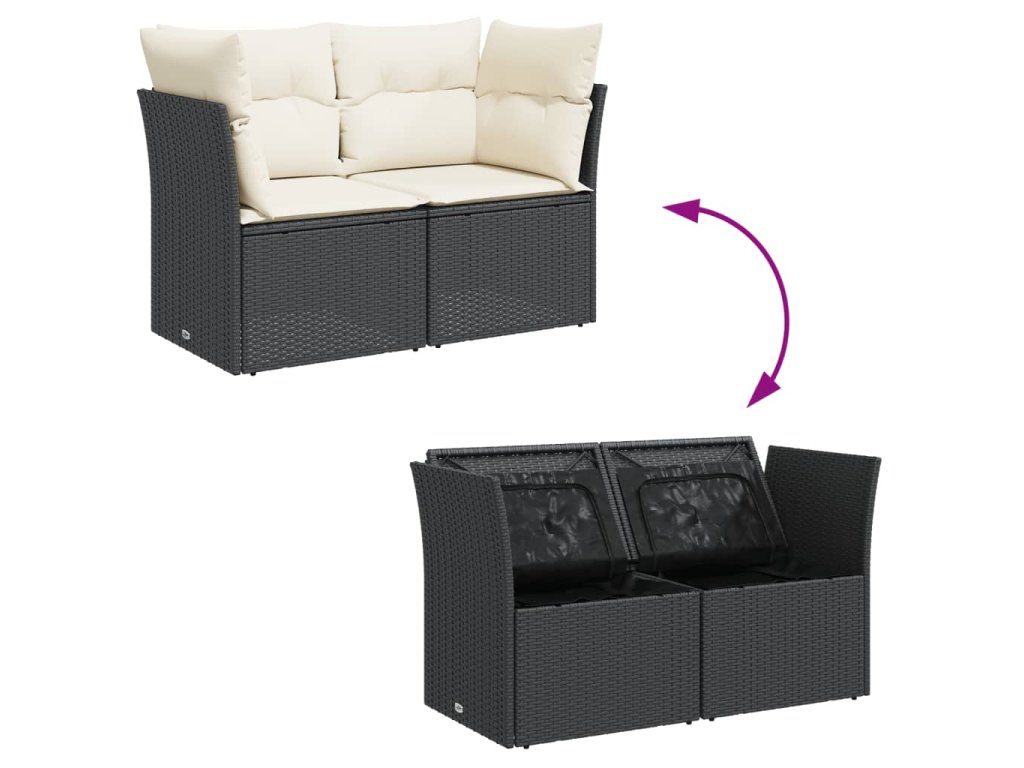 vidaXL Záhradná pohovka s vankúšmi 2-miestna čierna polyrattan