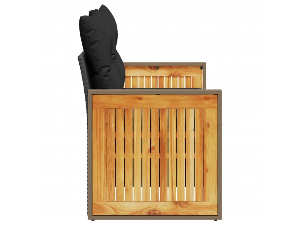 - Materiál: PE ratan, práškovaná oceľ, masívne akáciové drevo s olejovým náterom