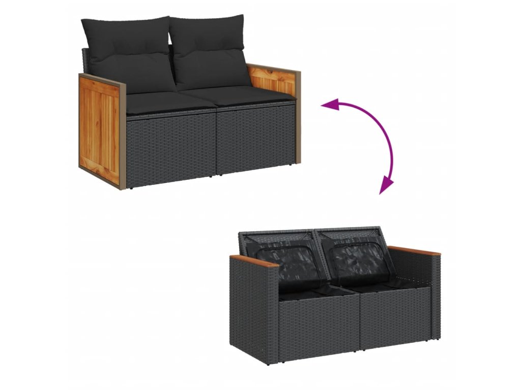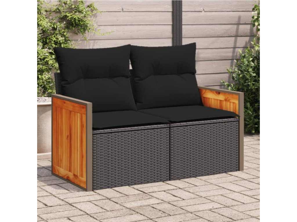 vidaXL Záhradná pohovka s vankúšmi 2-miestna čierna polyrattan