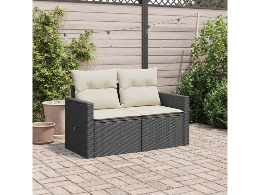vidaXL Záhradná pohovka s vankúšmi 2-miestna čierna polyrattan
