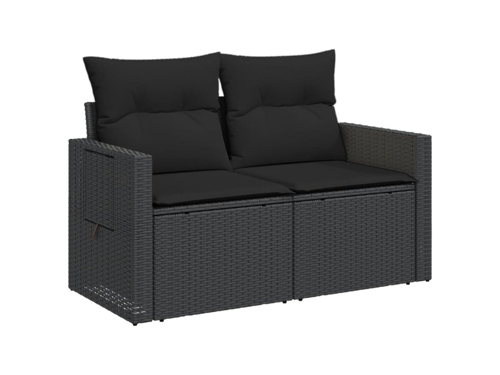 vidaXL Záhradná pohovka s vankúšmi 2-miestna čierna polyrattan