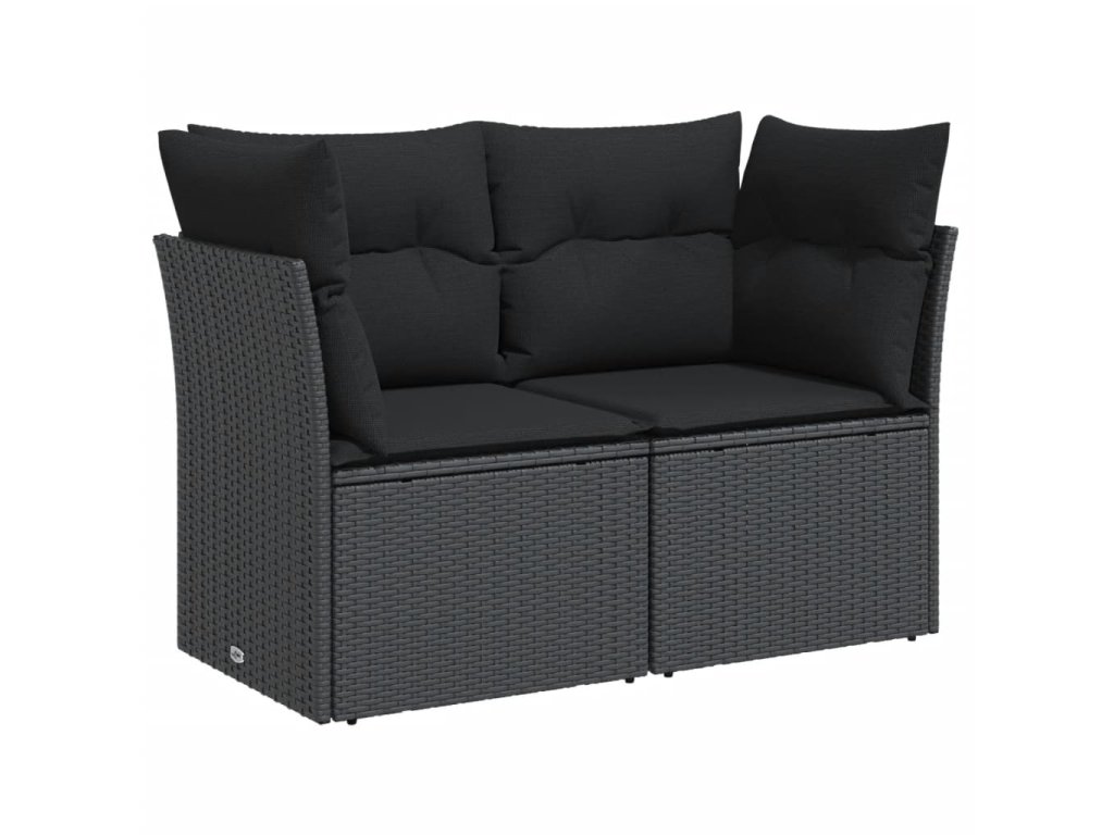 vidaXL Záhradná pohovka s vankúšmi 2-miestna čierna polyrattan