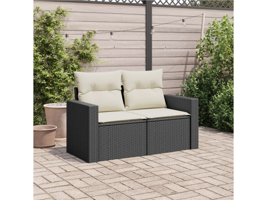 vidaXL Záhradná pohovka s vankúšmi 2-miestna čierna polyrattan