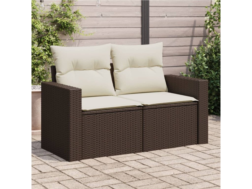 vidaXL Záhradná pohovka s vankúšmi 2-miestna hnedá polyratan