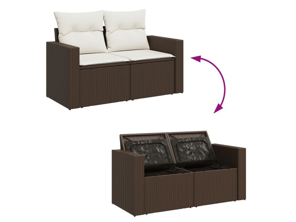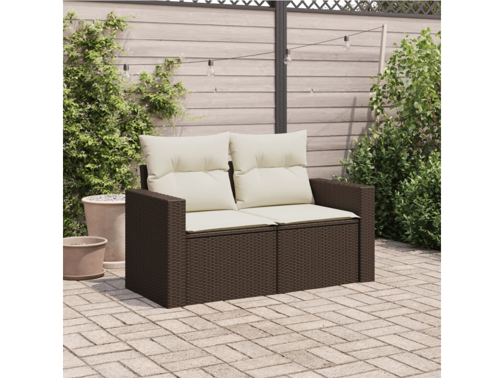 vidaXL Záhradná pohovka s vankúšmi 2-miestna hnedá polyratan