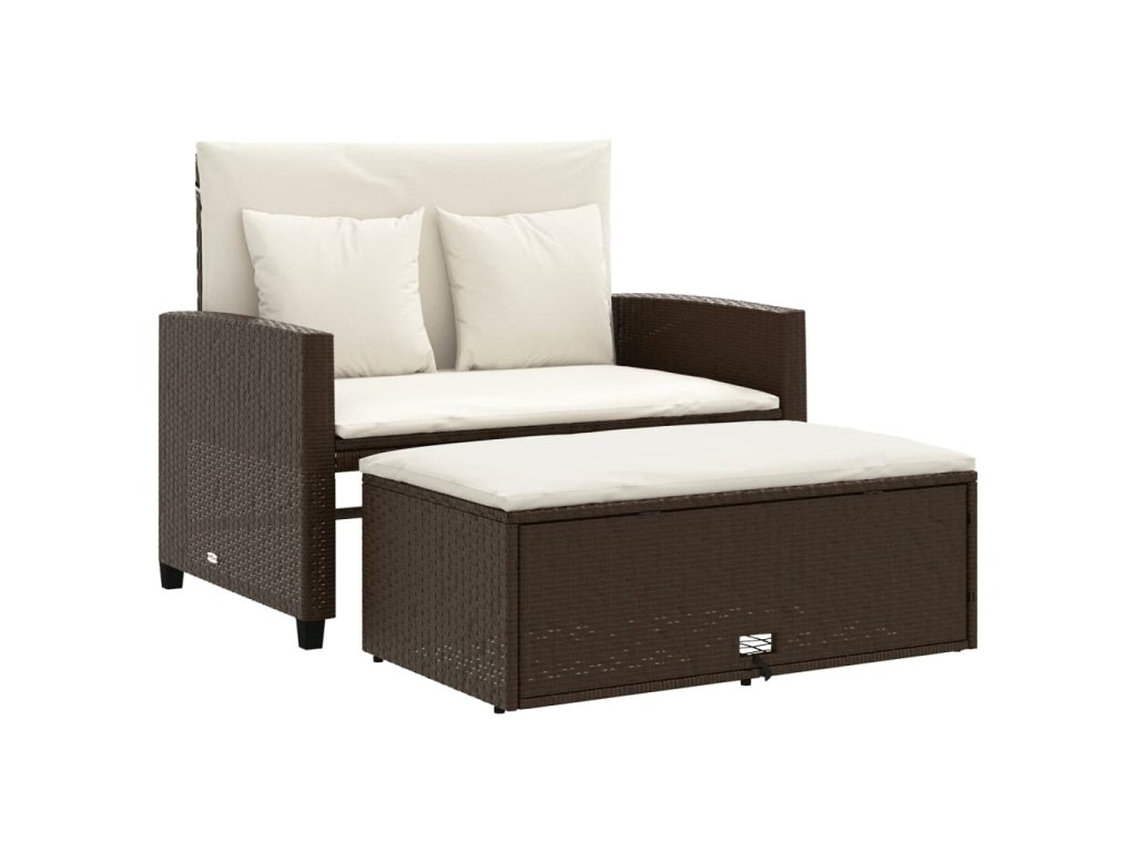 vidaXL Záhradná pohovka s vankúšmi 2-miestna hnedá polyratan